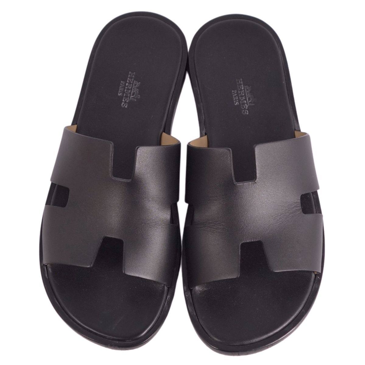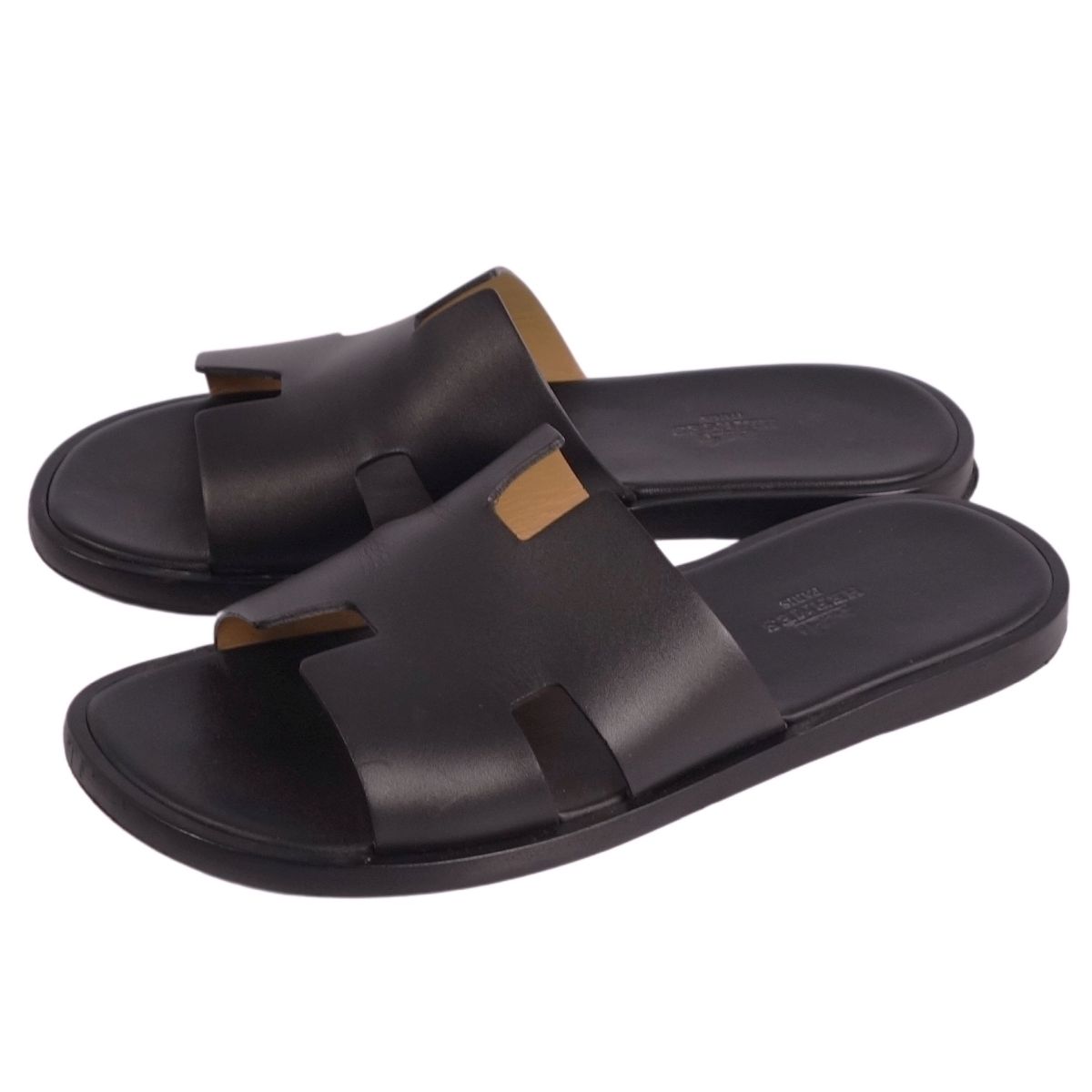 エルメス HERMES サンダル イズミール Hロゴ レザー シューズ 靴 メンズ イタリア製 ブラック サイズ40(25cm相当)
