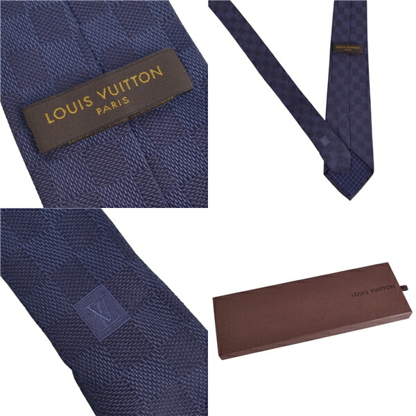 ルイヴィトン LOUIS VUITTON ネクタイ ダミエ シルク メンズ イタリア製 ネイビー サイズ-