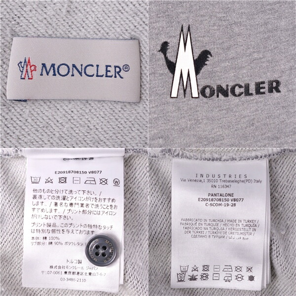 モンクレール MONCLER パンツ 2019 ロングパンツ イージーパンツ スウェット コットン ボトムス メンズ グレー サイズXS