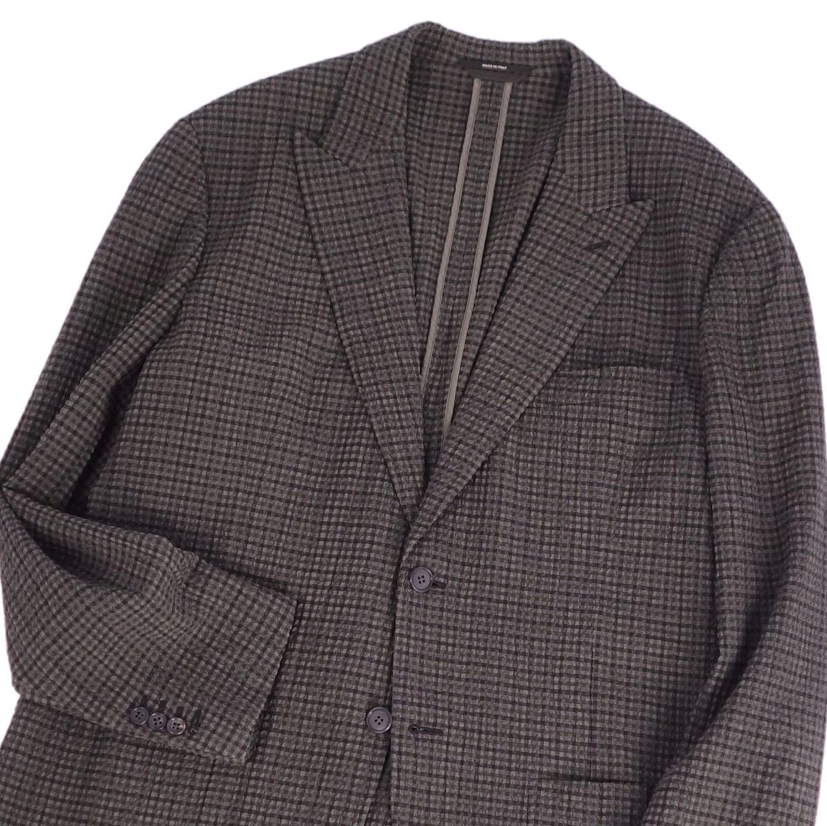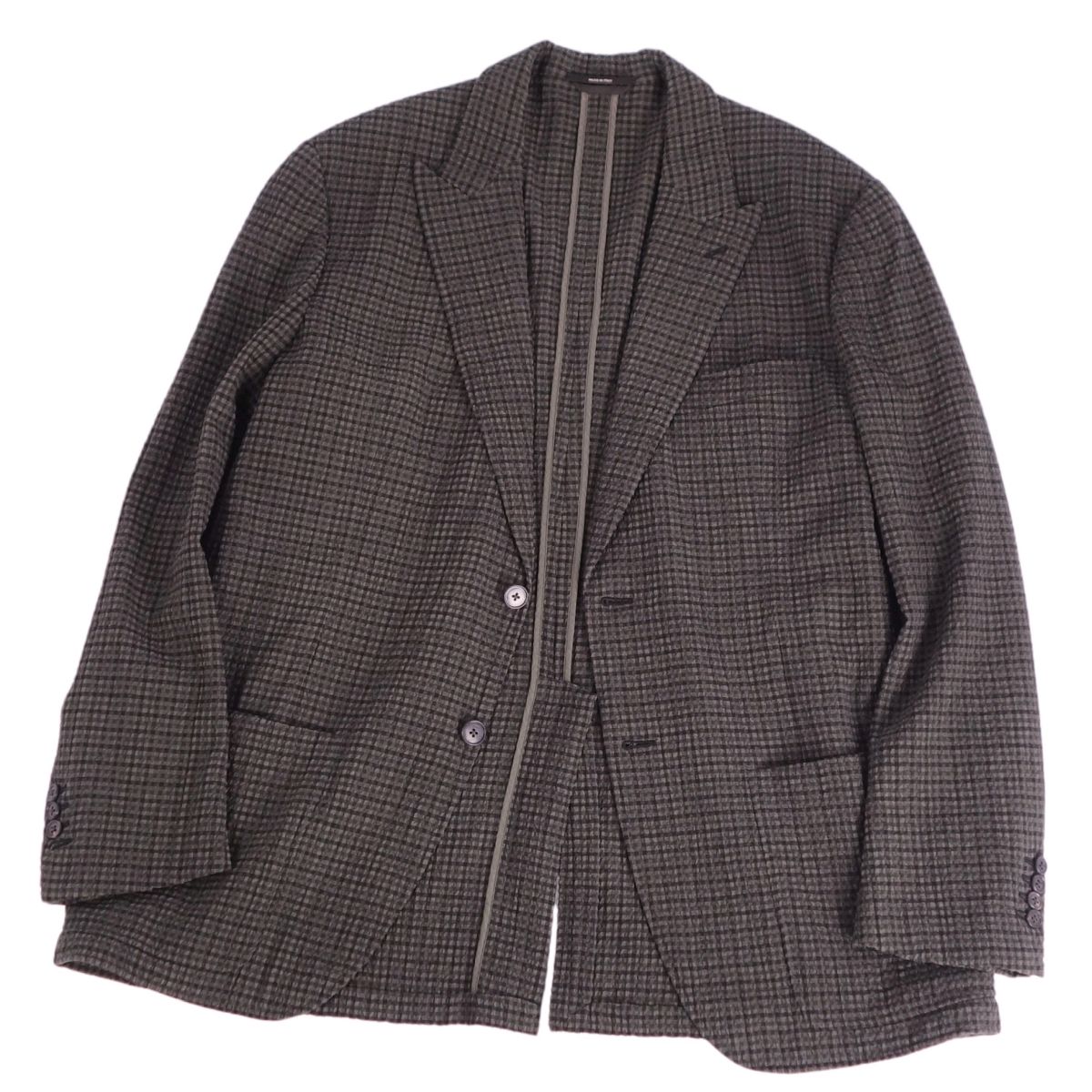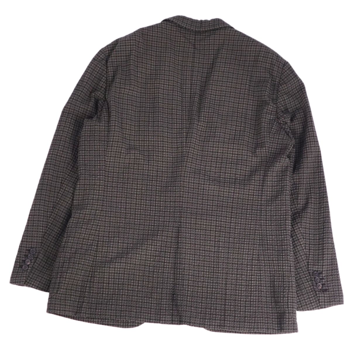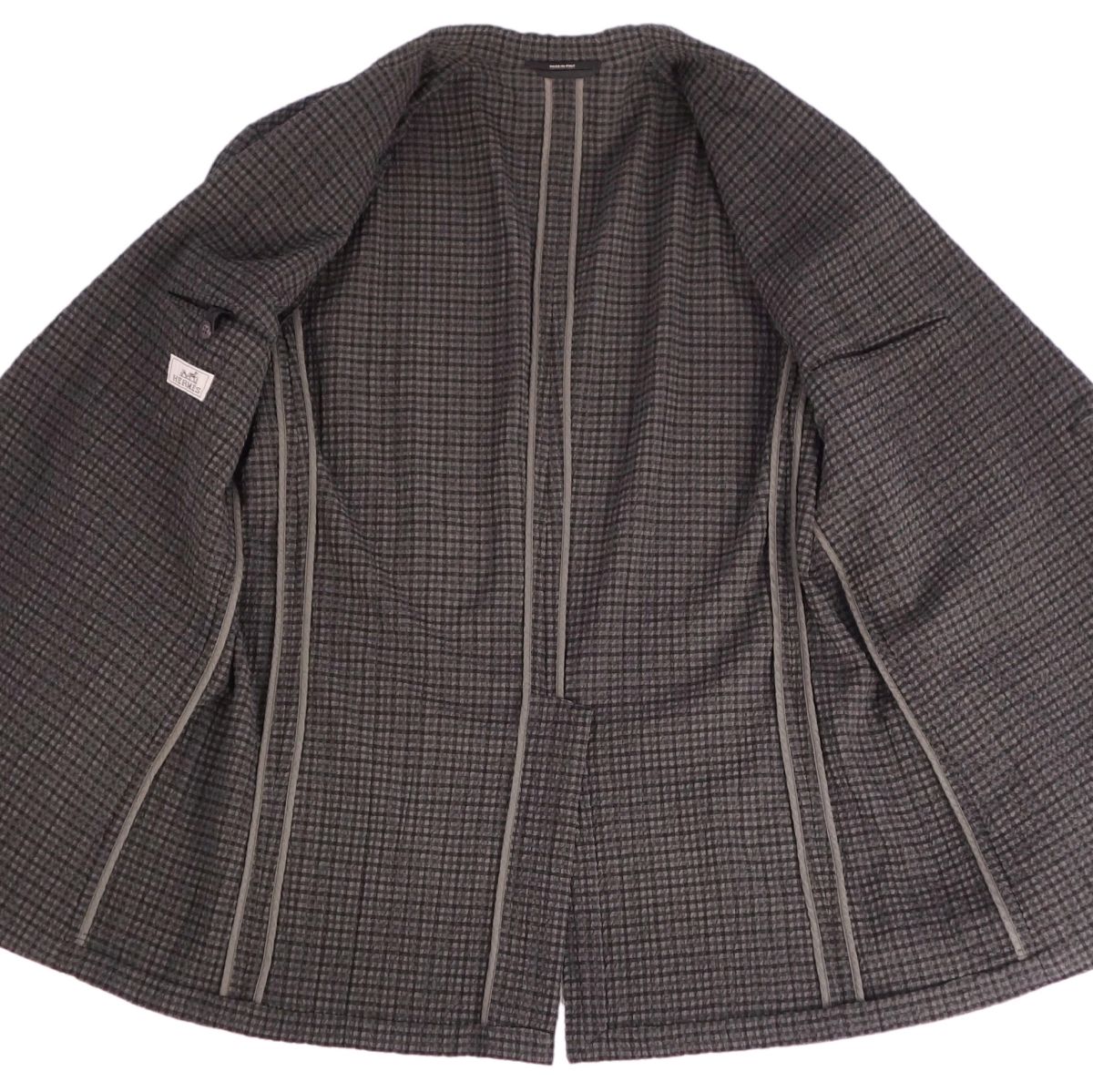 エルメス HERMES ジャケット テーラードジャケット 背抜き シングル ウール シアサッカー チェック柄 アウター メンズ ブラウン サイズ52(L相当)