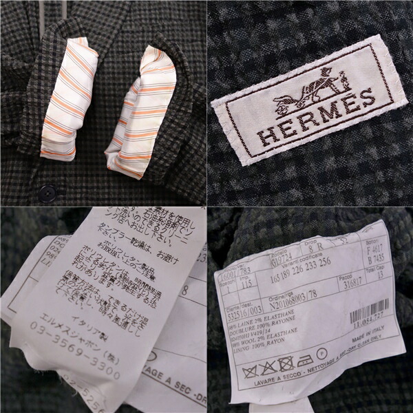 商品名 【美品】エルメス HERMES ジャケット テーラードジャケット 背抜き シングル ウール シアサッカー チェック柄 アウター メンズ 52(L相当) ブラウン【中古】