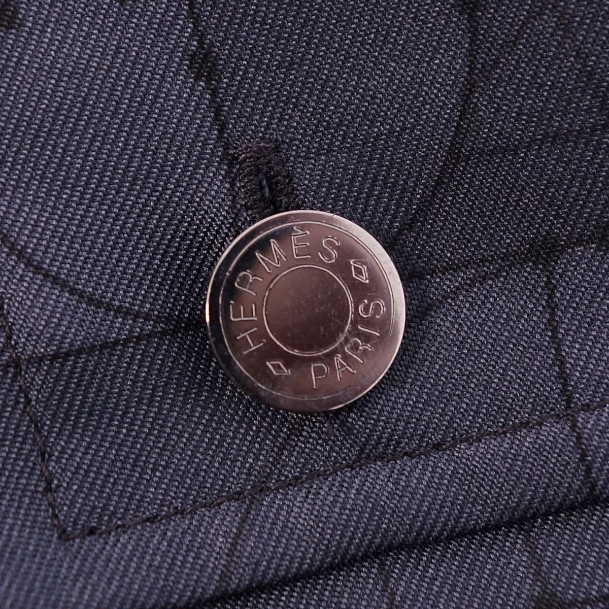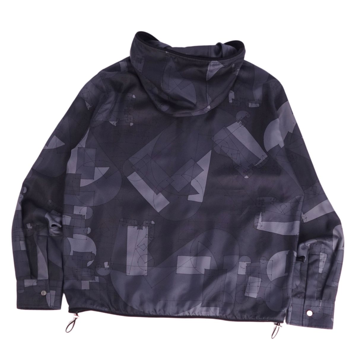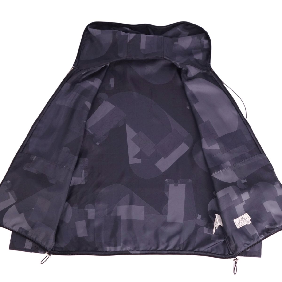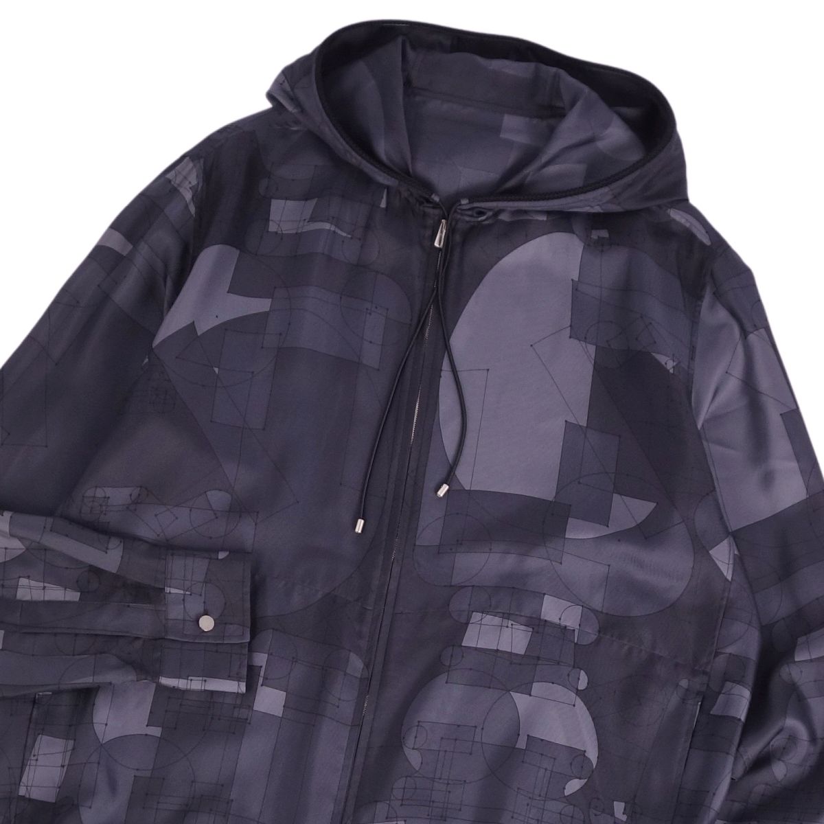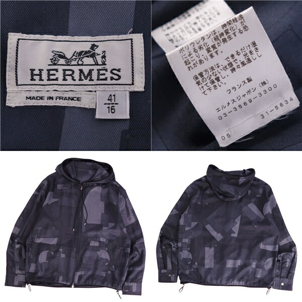 商品名 【極美品】エルメス HERMES パーカー ブルゾン ジャケット ジップアップ フード付き セリエボタン 総柄 幾何学模様 シルクツイル トップス メンズ 41/16(L相当) ネイビー【中古】