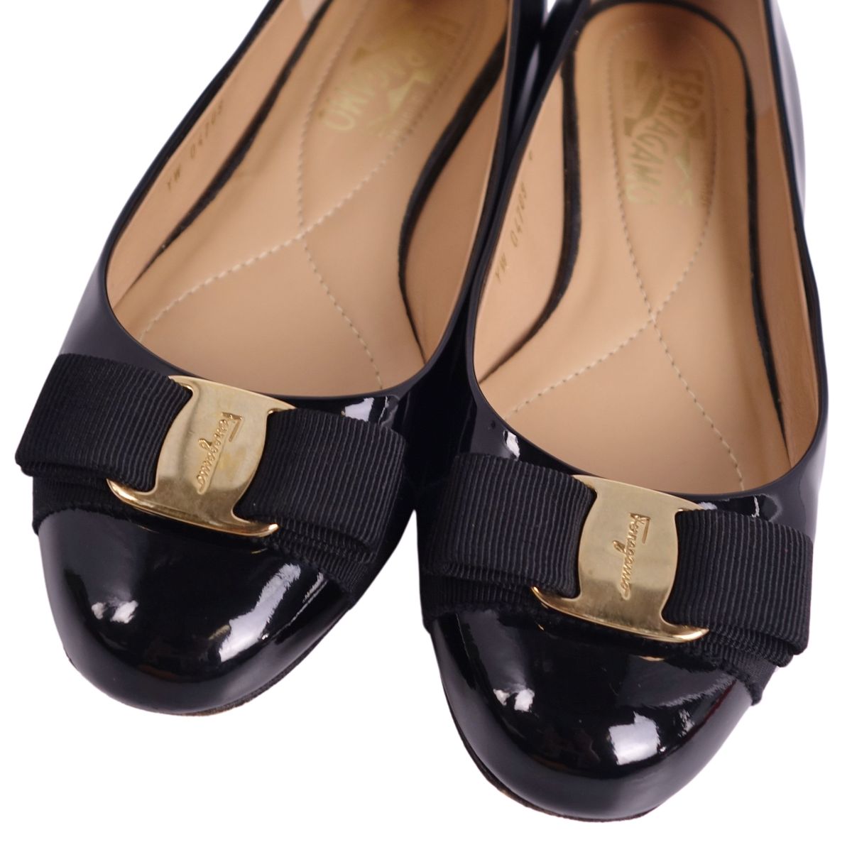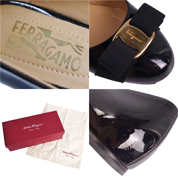 サルヴァトーレ フェラガモ Salvatore Ferragamo パンプス ヴァラ エナメルレザー シューズ 靴 レディース イタリア製 ブラック サイズ6D(23.5cm相当)