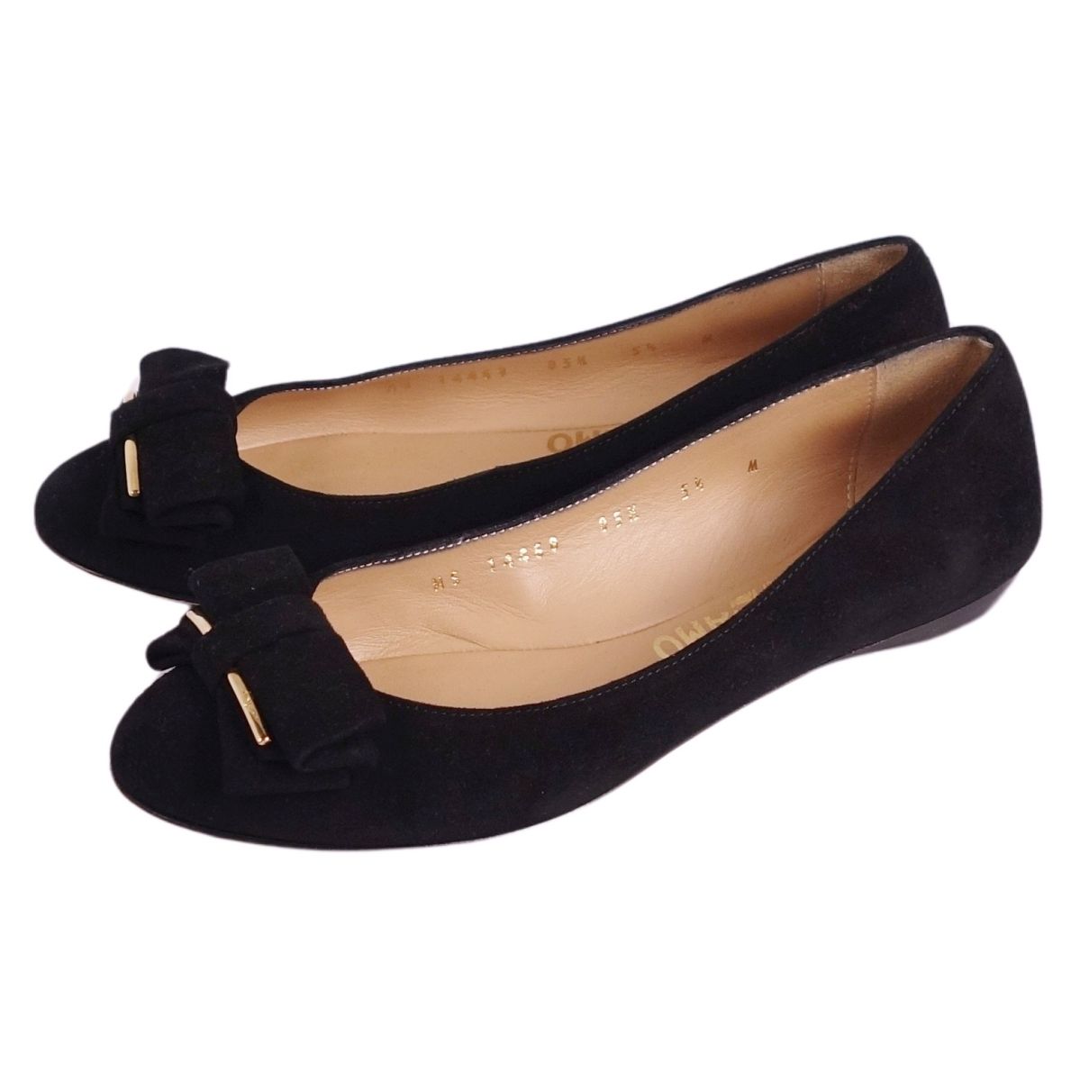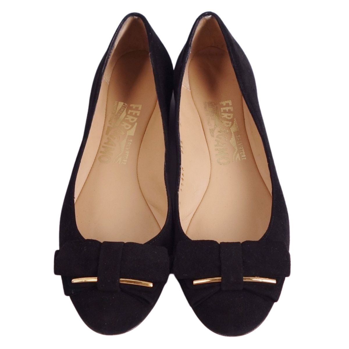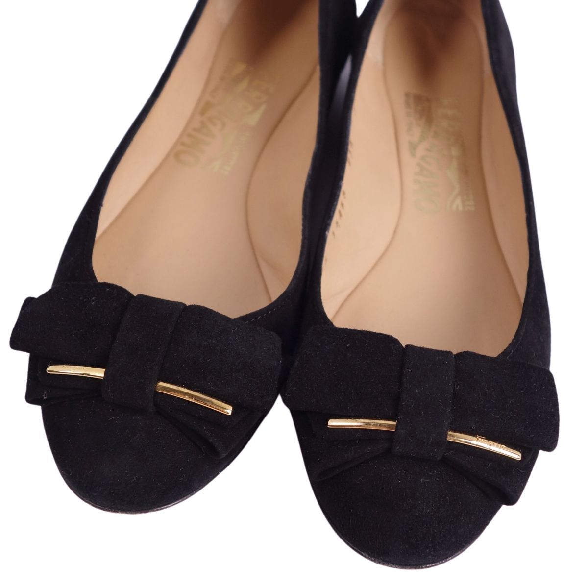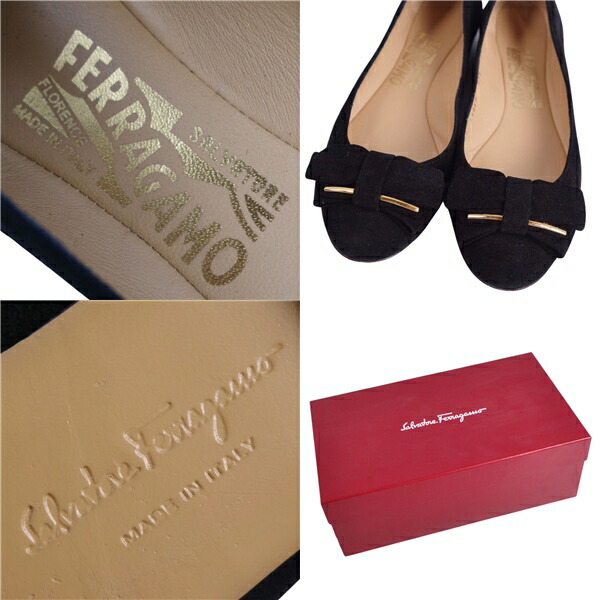 サルヴァトーレ フェラガモ Salvatore Ferragamo パンプス リボン スウェードレザー ヒール シューズ 靴 レディース イタリア製 ブラック サイズ5.5M(23cm相当)