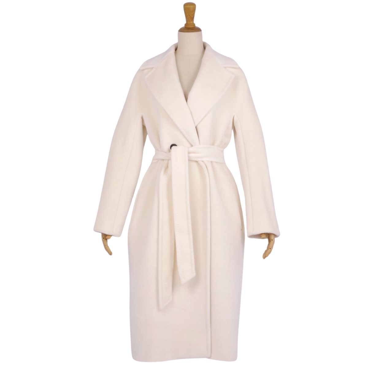 【極美品】マックスマーラ Max Mara STUDIO コート ロングコート アルパカ ウール アウター レディース イタリア製 JI38 GB6 FB36(M相当) ホワイト【中古】