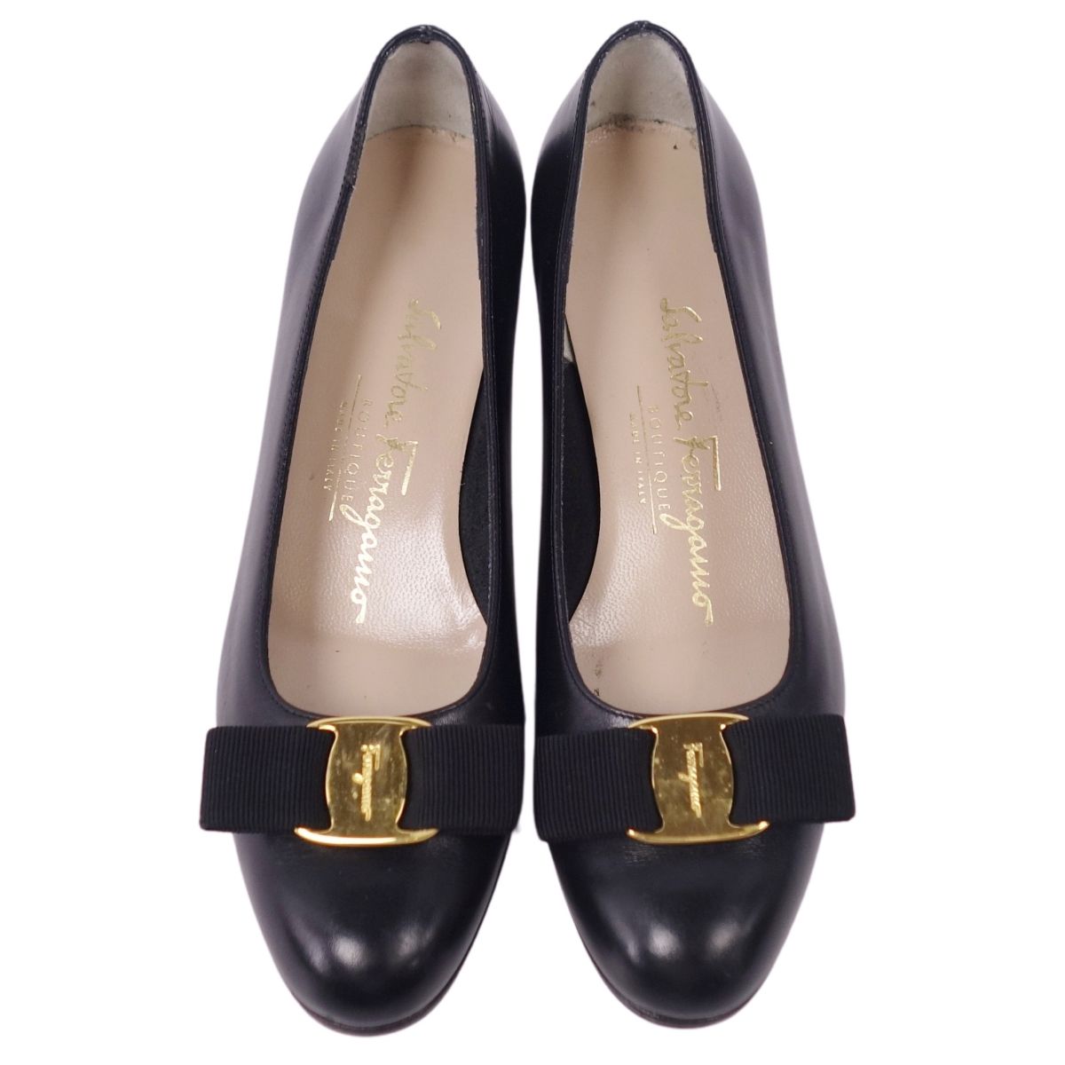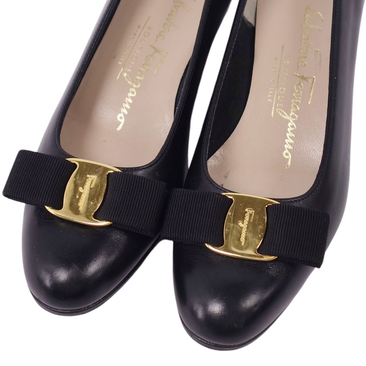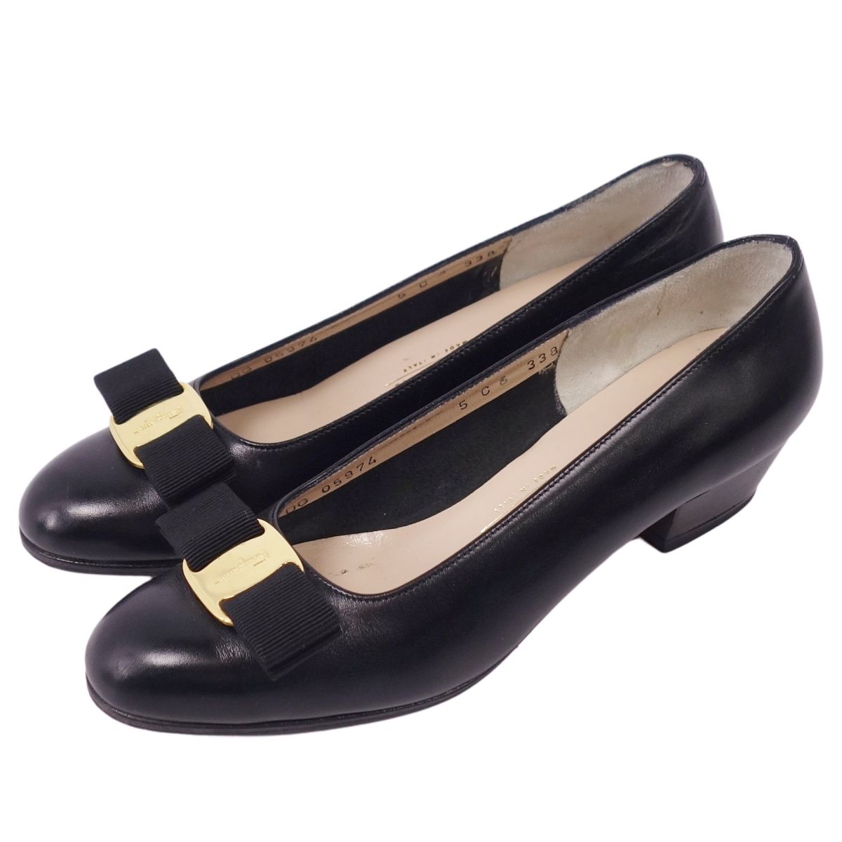 サルヴァトーレ フェラガモ Salvatore Ferragamo パンプス ヴァラ レザー ヒール シューズ 靴 レディース イタリア製 ブラック サイズ5C(22.5cm相当)