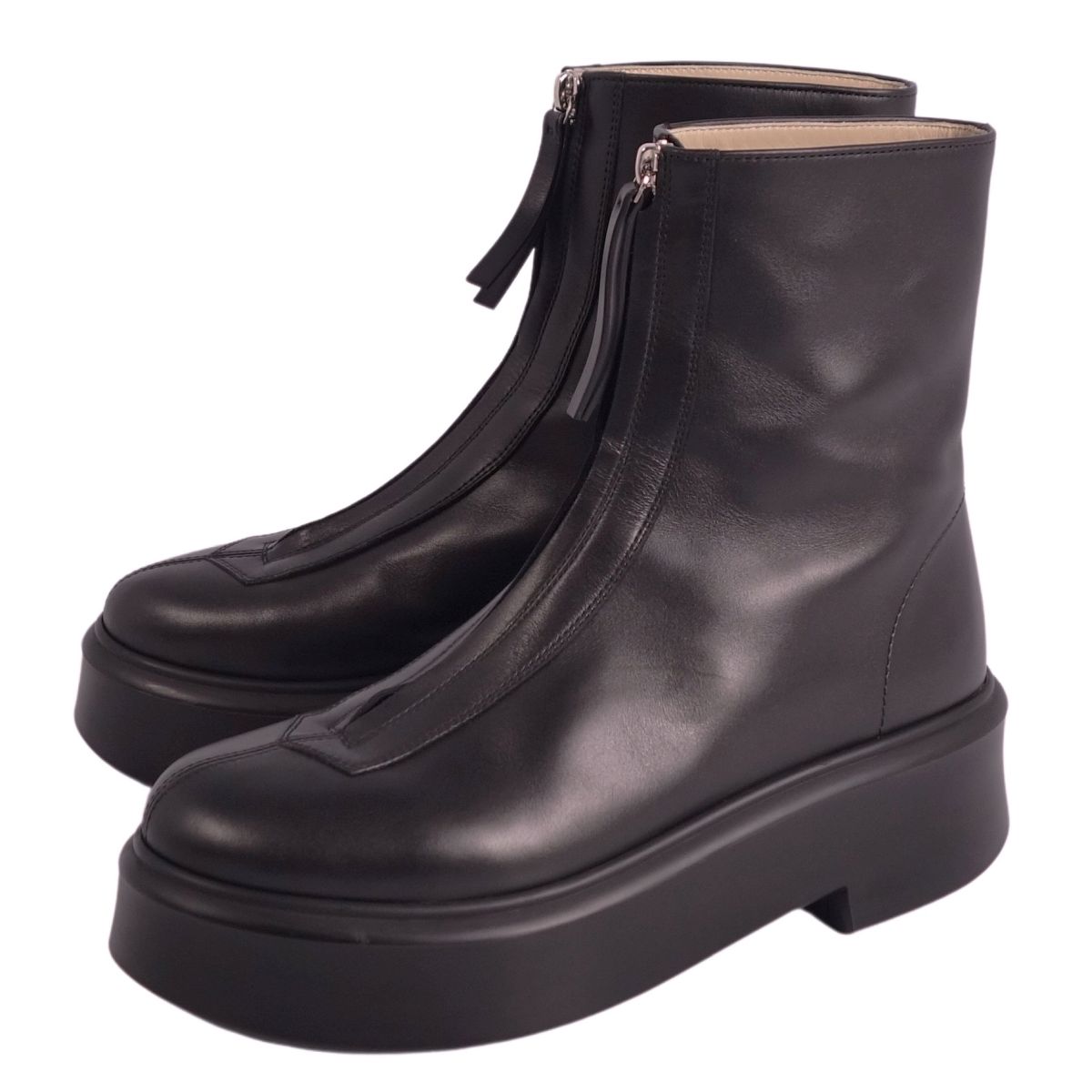 ザロウ THE ROW ブーツ Zipped Boot ショートブーツ フロントジッパー レザー シューズ 靴 レディース イタリア製 ブラック サイズ39(26cm相当)