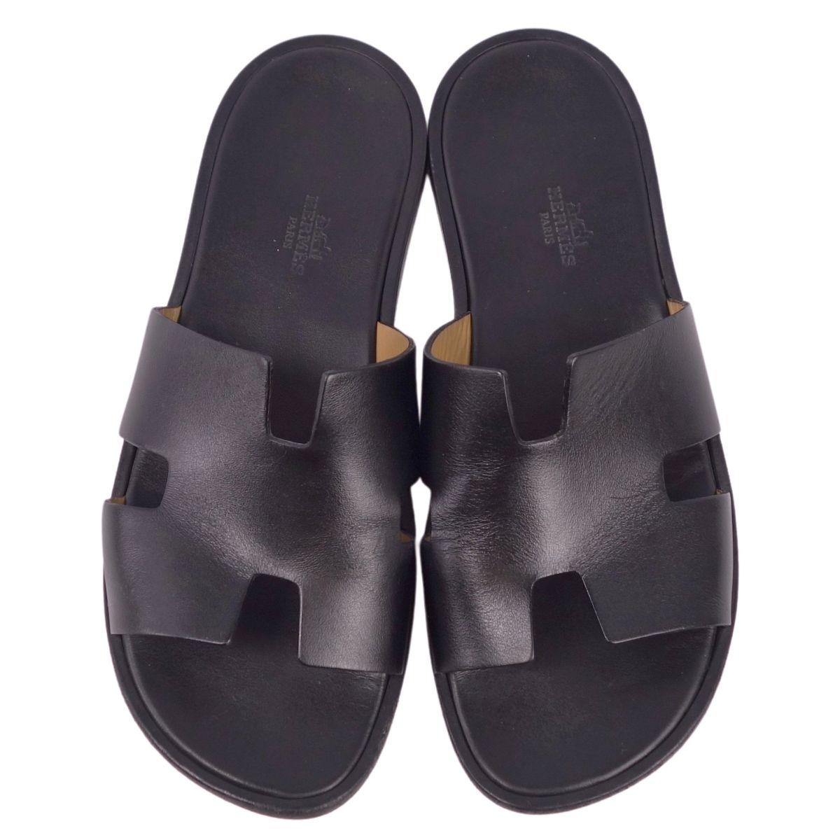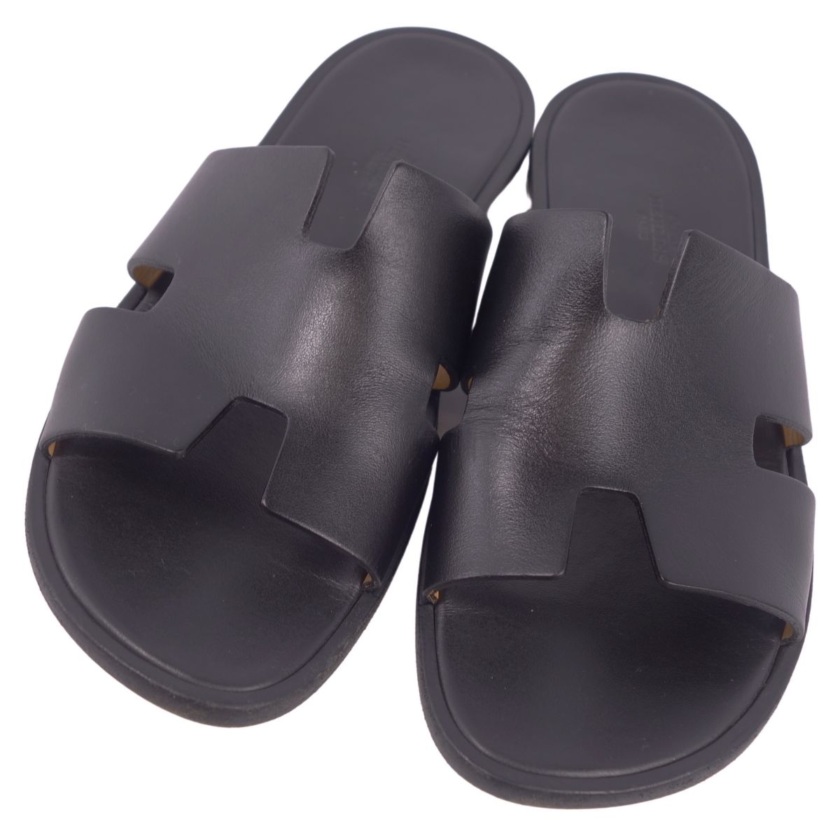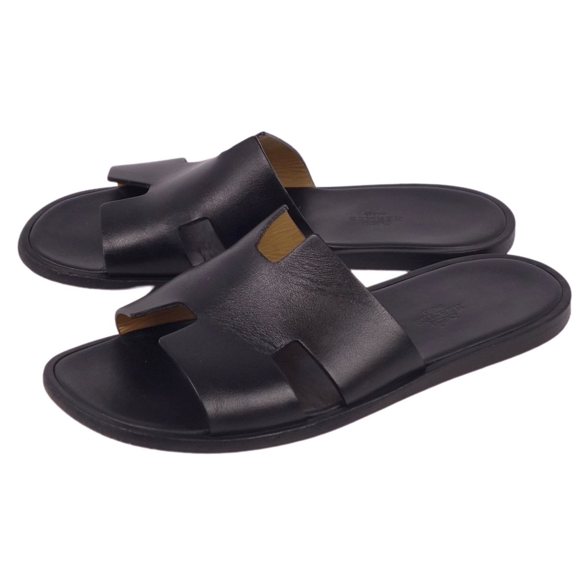 【美品】エルメス HERMES サンダル イズミール Hロゴ レザー シューズ メンズ イタリア製 41(26cm相当) ブラック【中古】