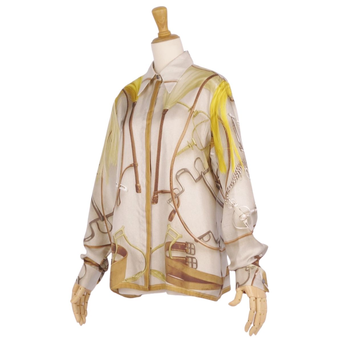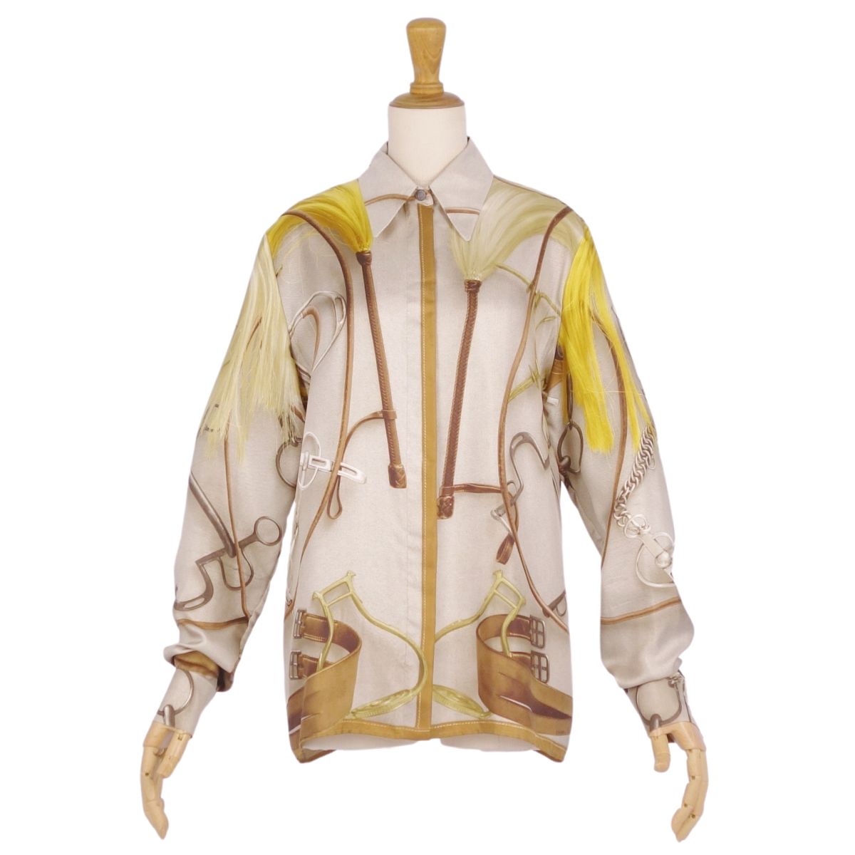 商品名 【美品】エルメス HERMES シャツ ブラウス ロングスリーブ 長袖 総柄 シルク トップス レディース フランス製 38(M相当) マルチカラー【中古】