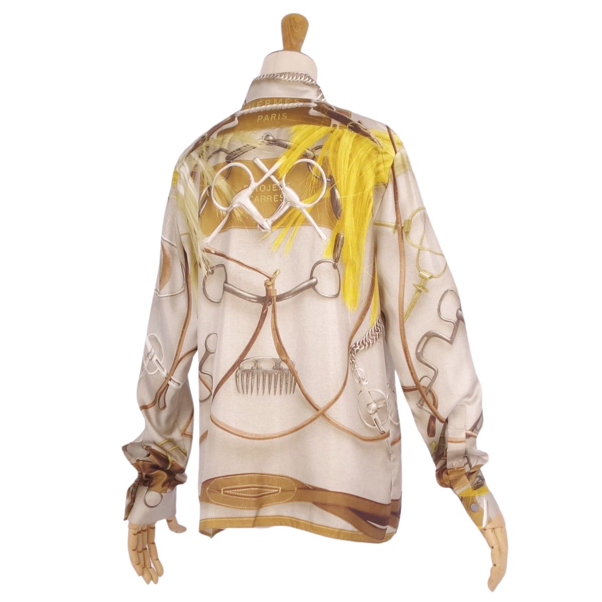 エルメス HERMES シャツ ブラウス ロングスリーブ 長袖 総柄 シルク トップス レディース フランス製 マルチカラー サイズ38(M相当)