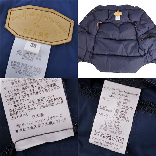 表地:ウール100% 裏地:ナイロン100% 中綿:ダウン70% フェザー30% 皮革部分:牛革