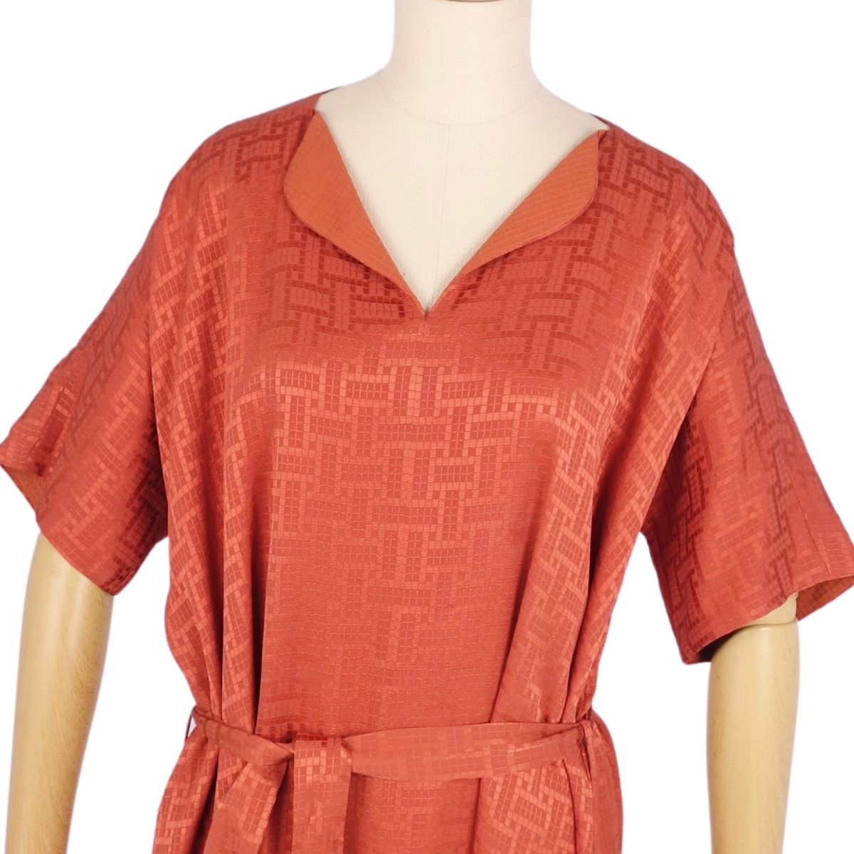 【美品】エルメス HERMES ワンピース 2024SS ベルト付き 総柄 シルク ジャガード レディース イタリア製 34(S相当) オレンジ【中古】