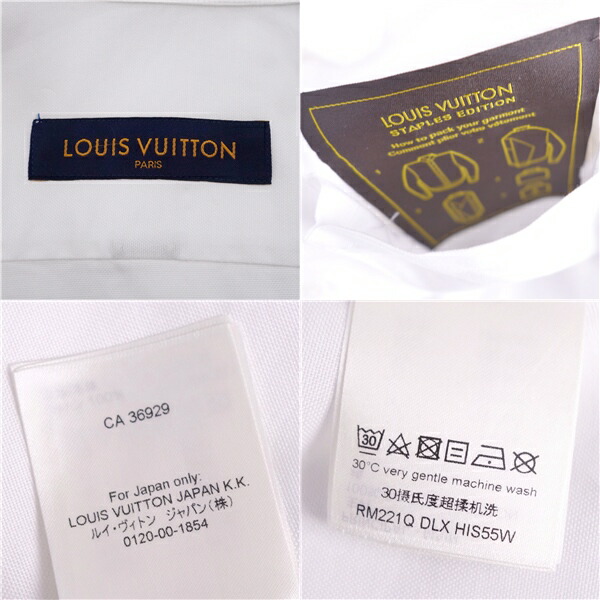 【美品】ルイヴィトン LOUIS VUITTON シャツ 2022 DNA ステープルズエディション ロングスリーブ 長袖 コットン トップス メンズ イタリア製 S ホワイト【中古】
