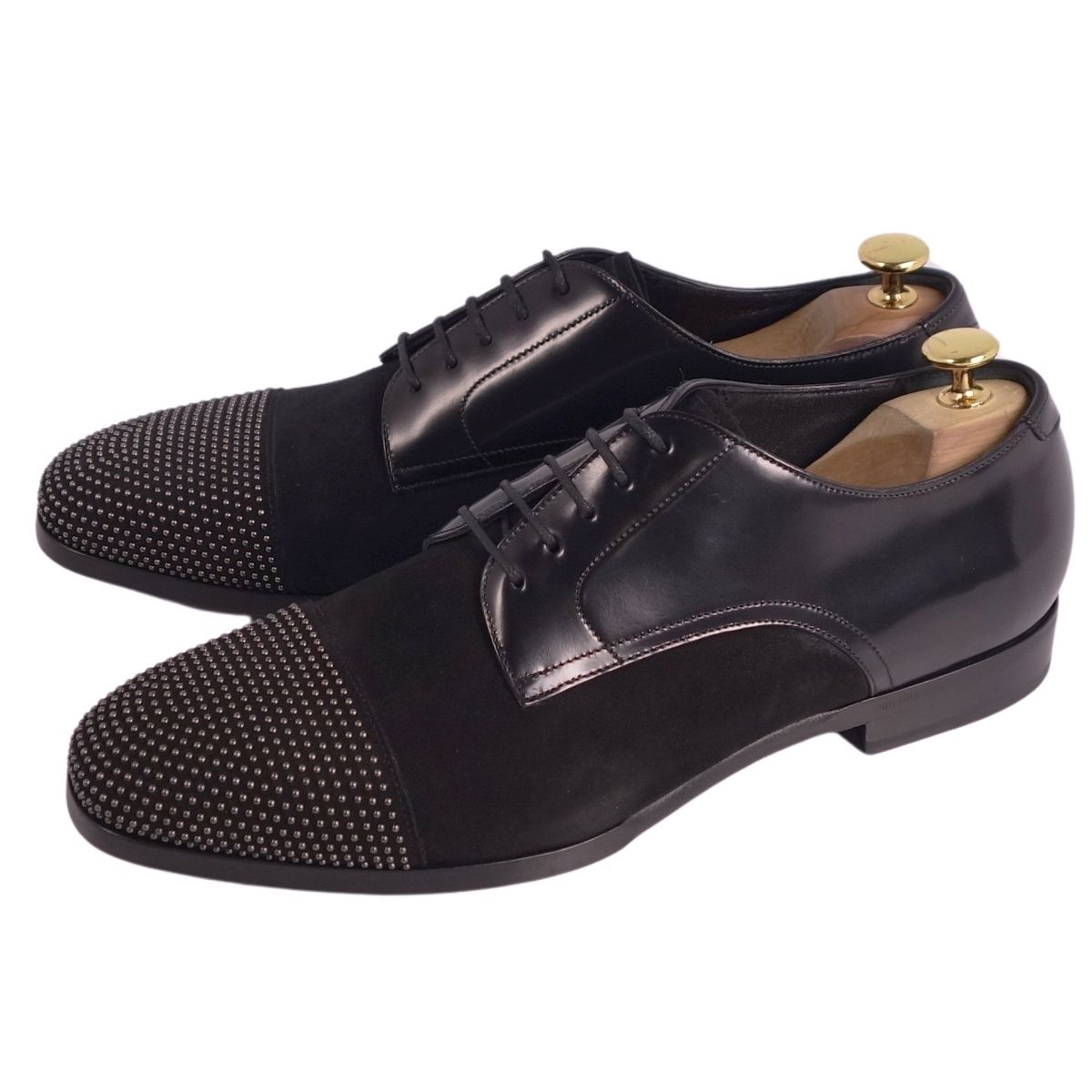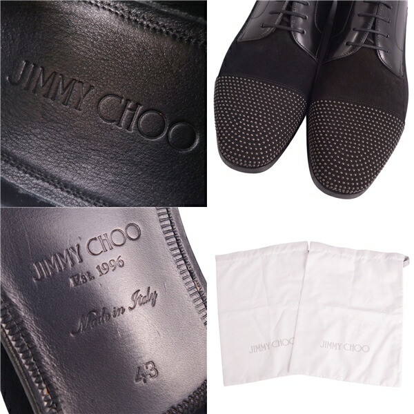 ジミーチュウ JIMMY CHOO レザーシューズ ダービーシューズ スウェード レザー スタッズ 革靴 メンズ イタリア製 ブラック サイズ43(28cm相当)