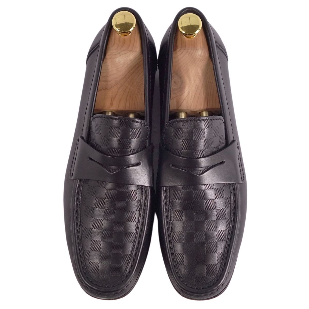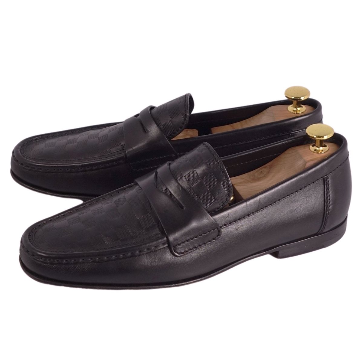 【美品】ルイヴィトン LOUIS VUITTON ローファー モカシン ダミエ レザー シューズ 靴 メンズ イタリア製 6M(25cm相当) ブラック【中古】