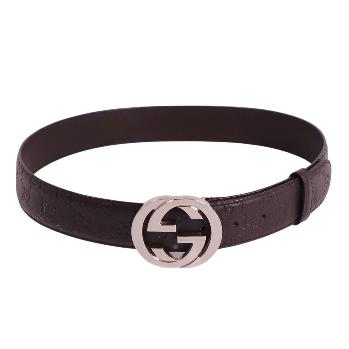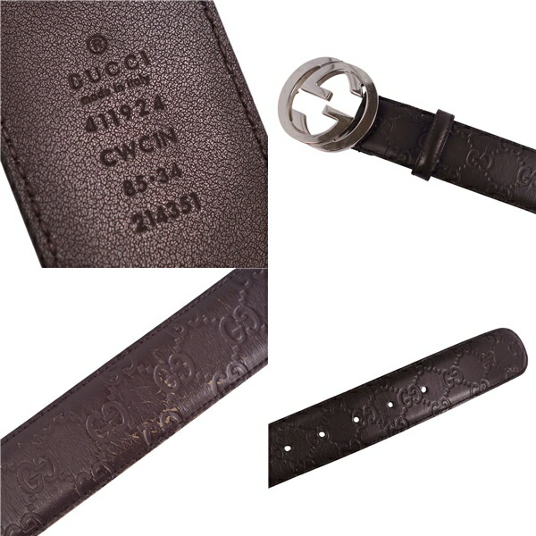 グッチ GUCCI ベルト レザーベルト インターロッキング グッチシマ GG柄 メンズ イタリア製 ブラウン サイズ85
