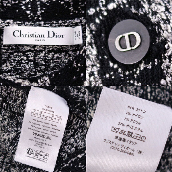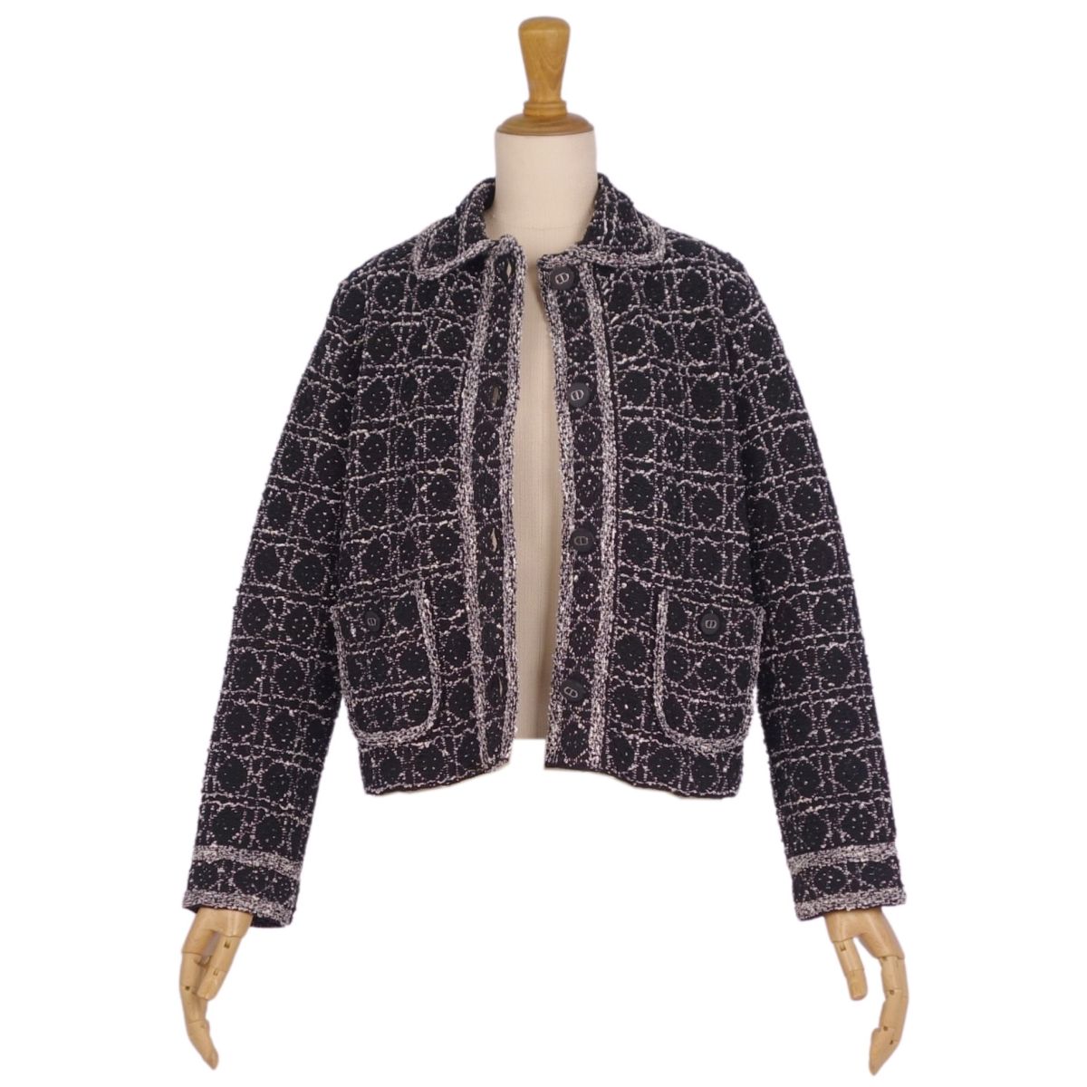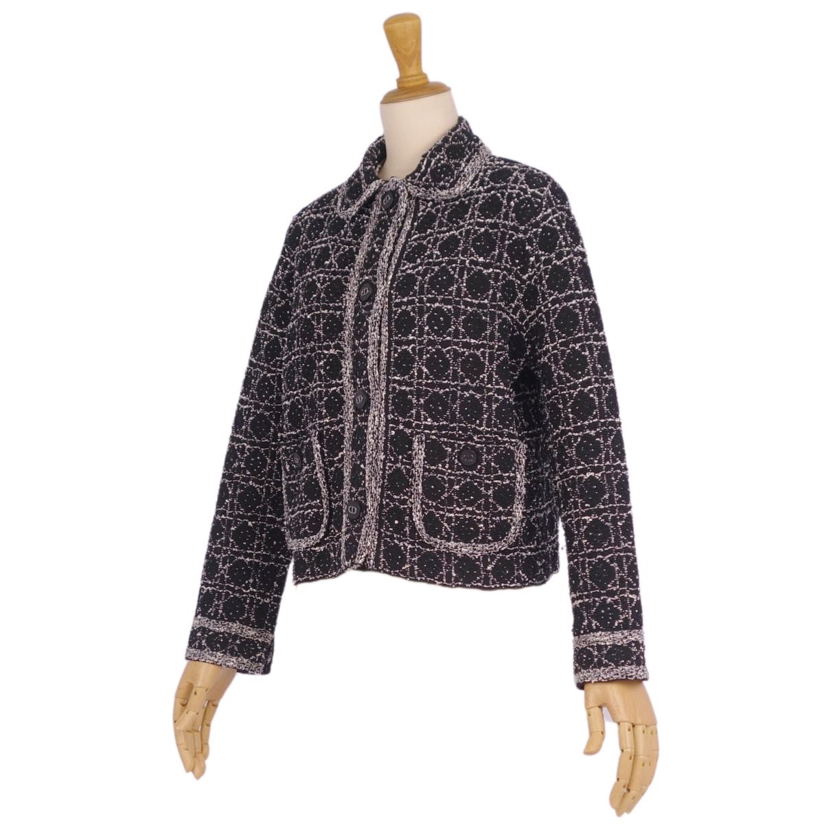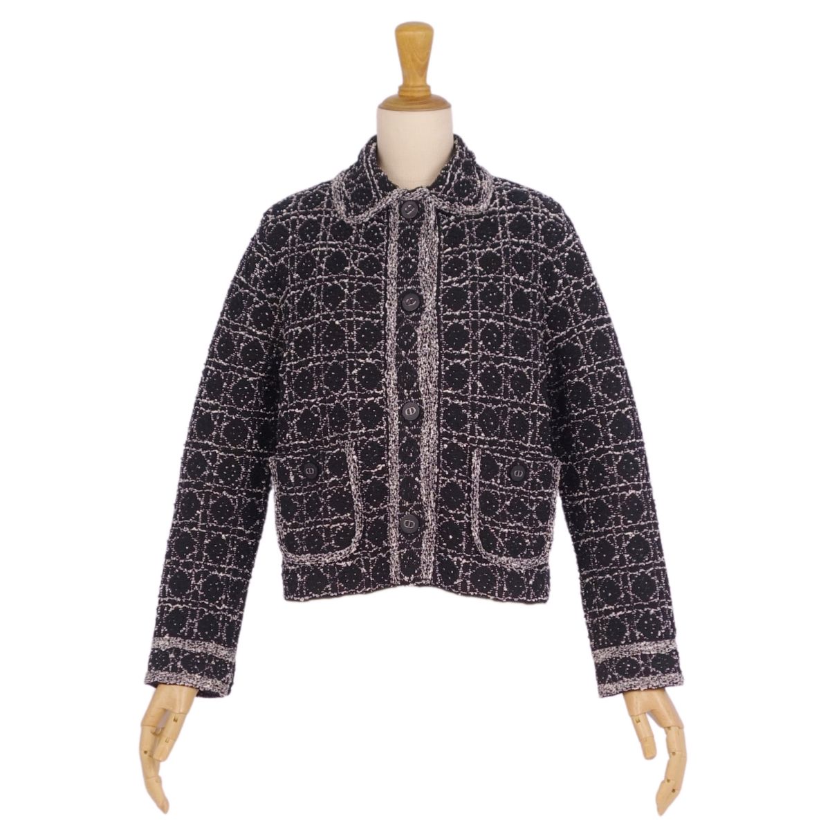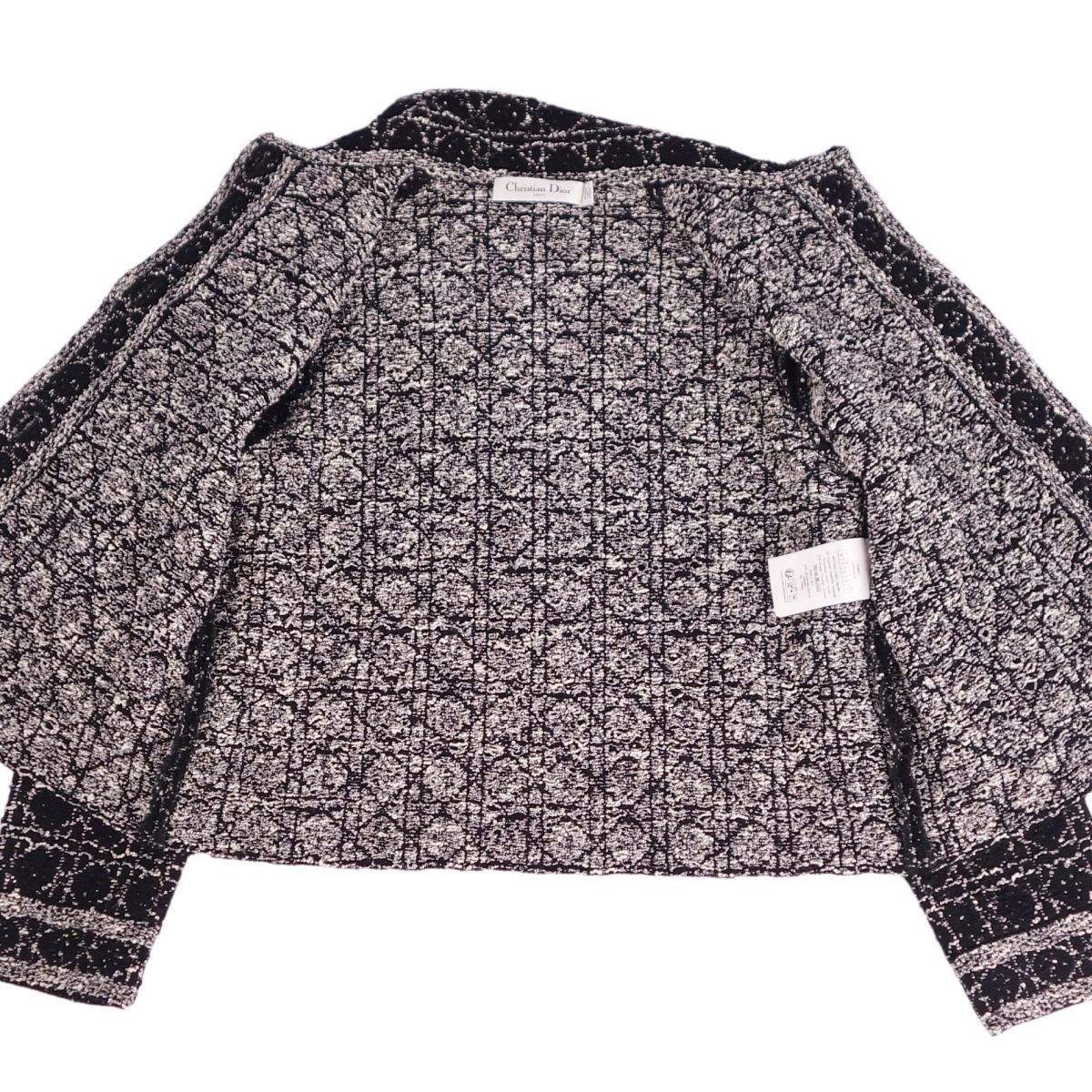 商品名 【新品同様】クリスチャンディオール Christian Dior 2024SS ジャケット マイクロカナージュ テクニカル コットン ツイード CDシグネチャーボタン クロップド ショート丈 アウター レディース F36 USA4 I40(S相当) ブラック/ホワイト【中古】