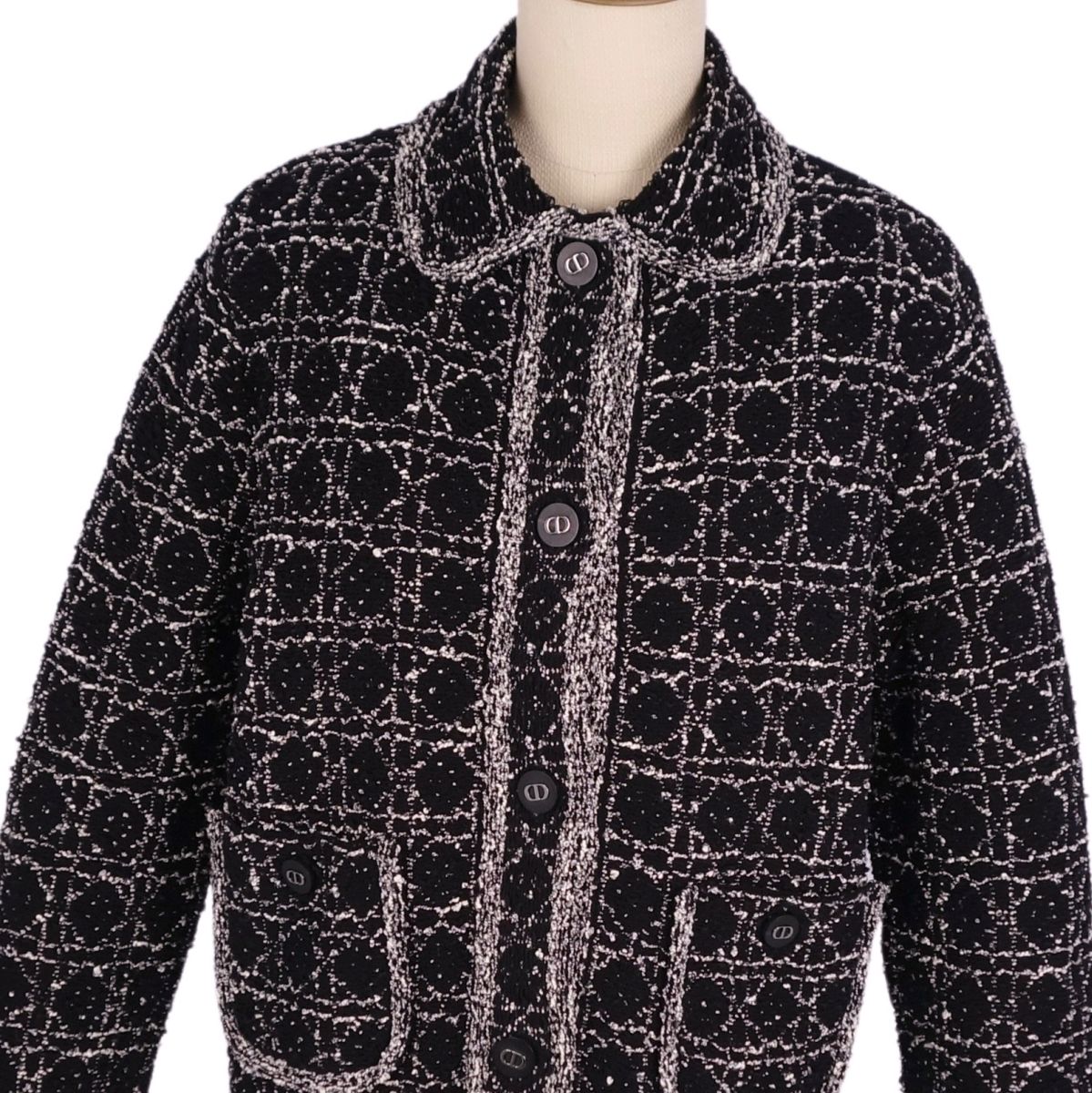 クリスチャンディオール Christian Dior 2024SS ジャケット マイクロカナージュ テクニカル コットン ツイード CDシグネチャーボタン クロップド ショート丈 アウター レディース ブラック/ホワイト サイズF36 USA4 I40(S相当)