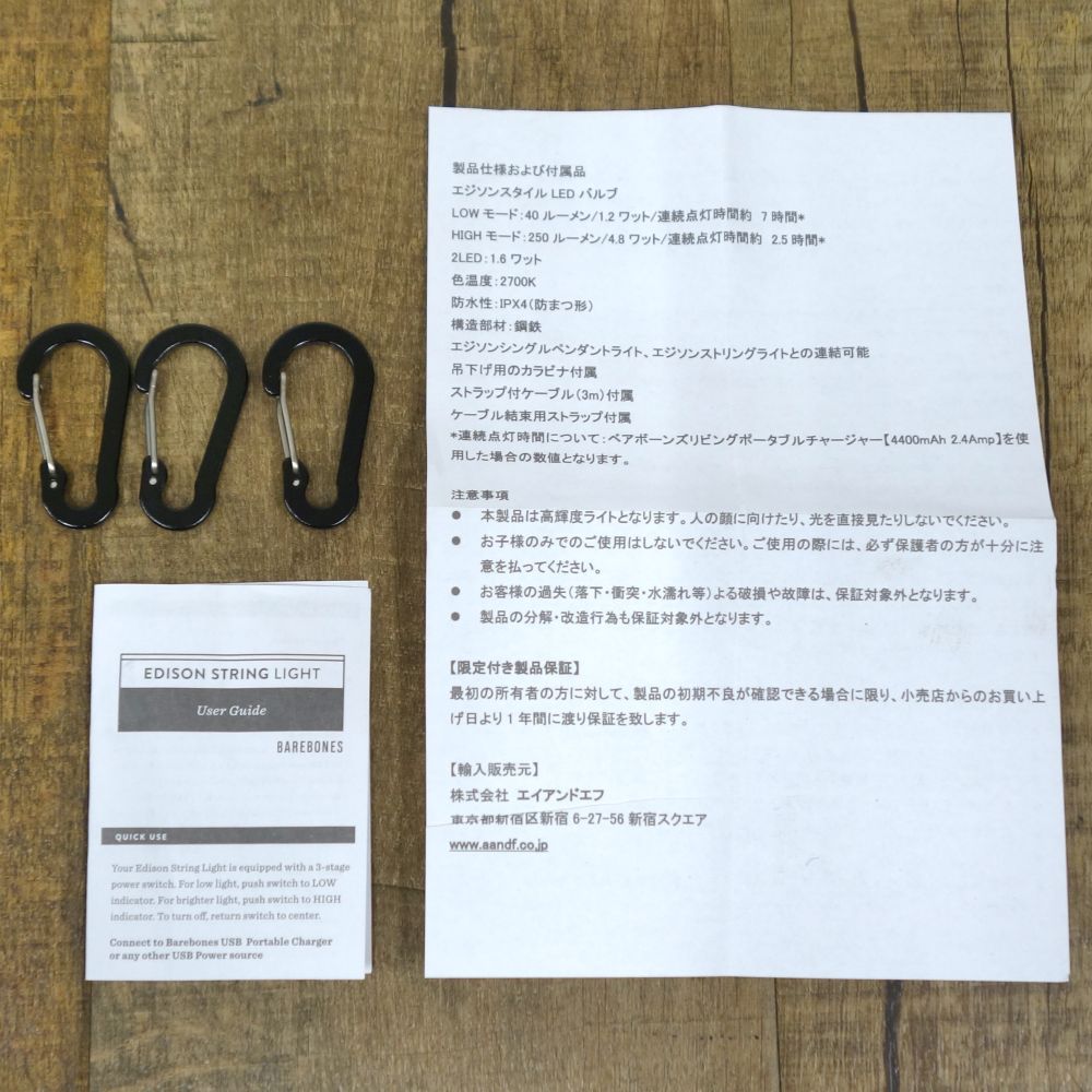 【付属品:カラビナ・説明書・パッケージ(箱)】