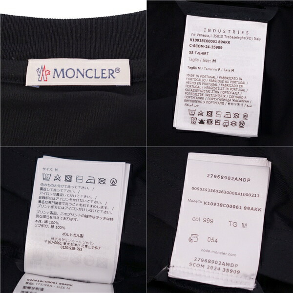 モンクレール MONCLER Tシャツ 2024 カットソー ショートスリーブ 半袖 コットン トップス メンズ ブラック サイズM