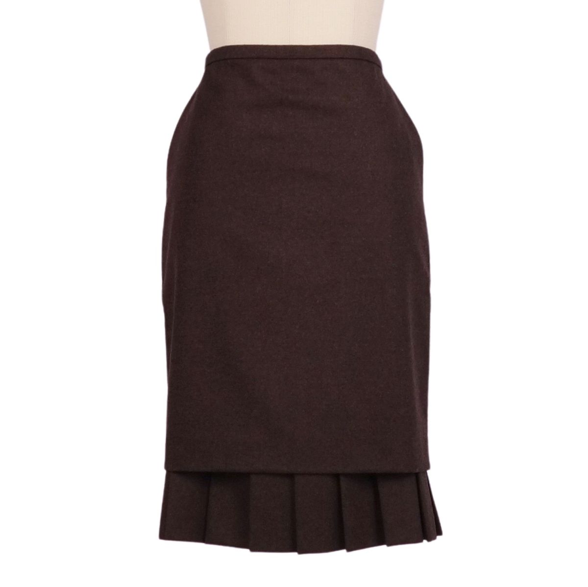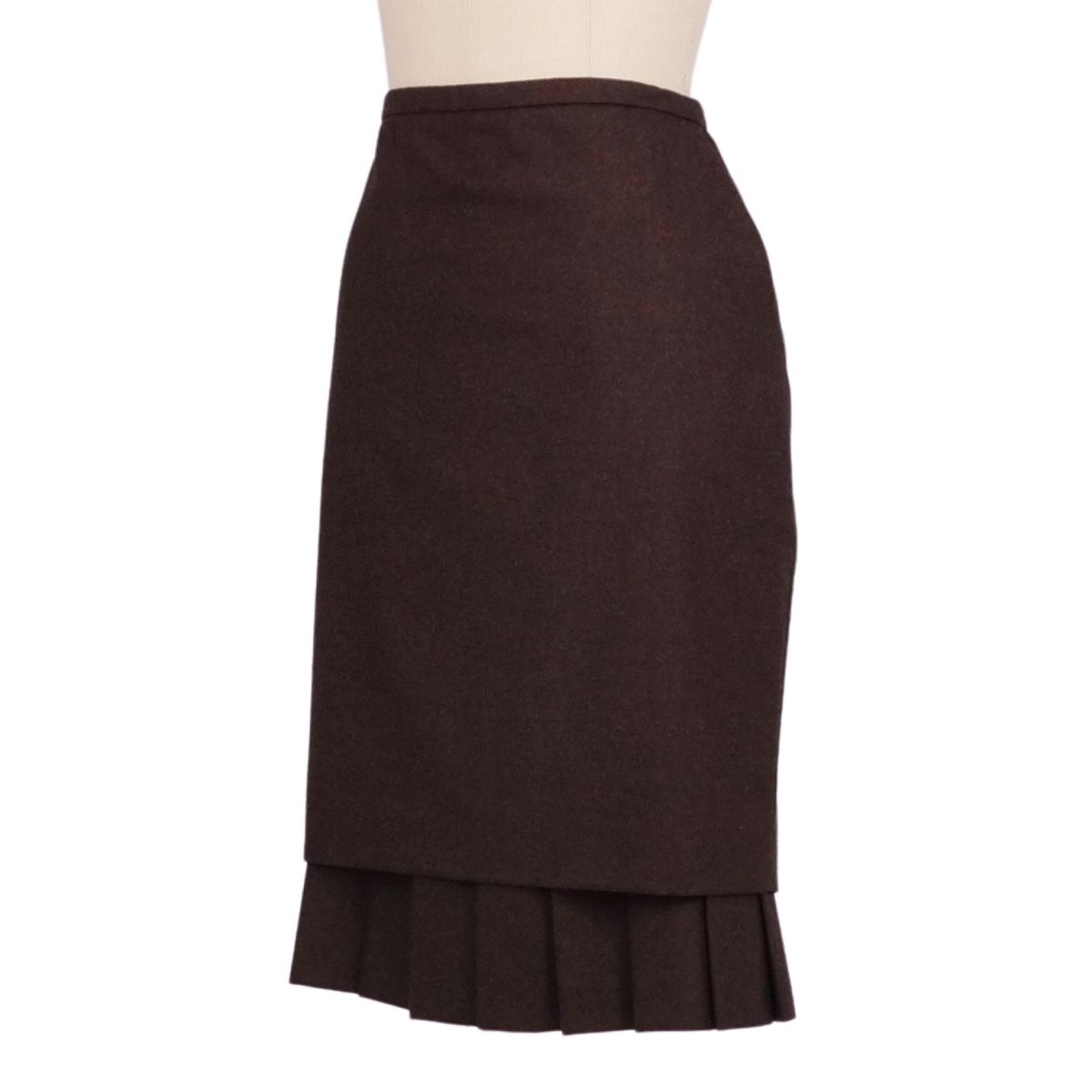 エルメス HERMES スカート タイトスカート プリーツ ひざ丈 無地 ウール ボトムス レディース ブラウン サイズ36(S相当)
