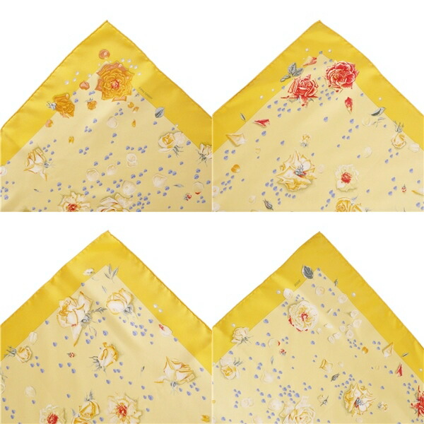 商品名 【美品】エルメス HERMES スカーフ カレ45 LA ROSEE Anne Gavarni 薔薇の雫 シルク レディース フランス製 イエロー【中古】