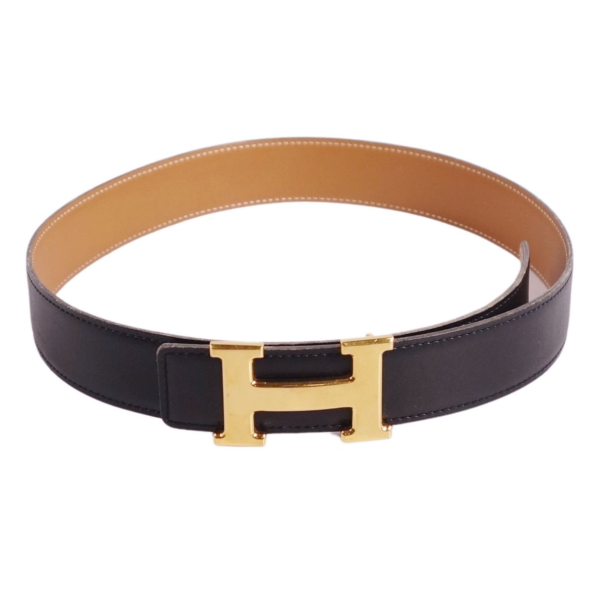 Vintage エルメス HERMES 96年 ベルト レザーベルト リバーシブル Hロゴ コンスタンス レディース フランス製 ブラック/ブラウン サイズ70