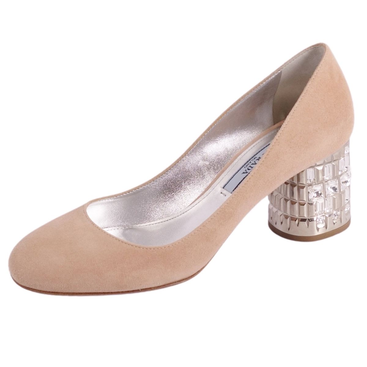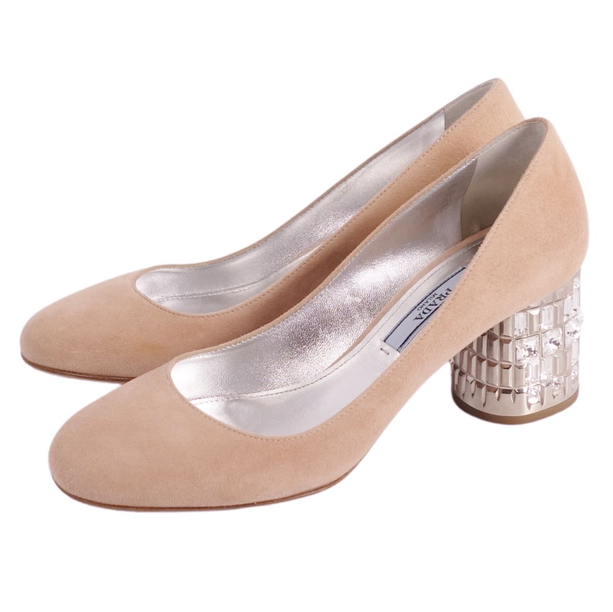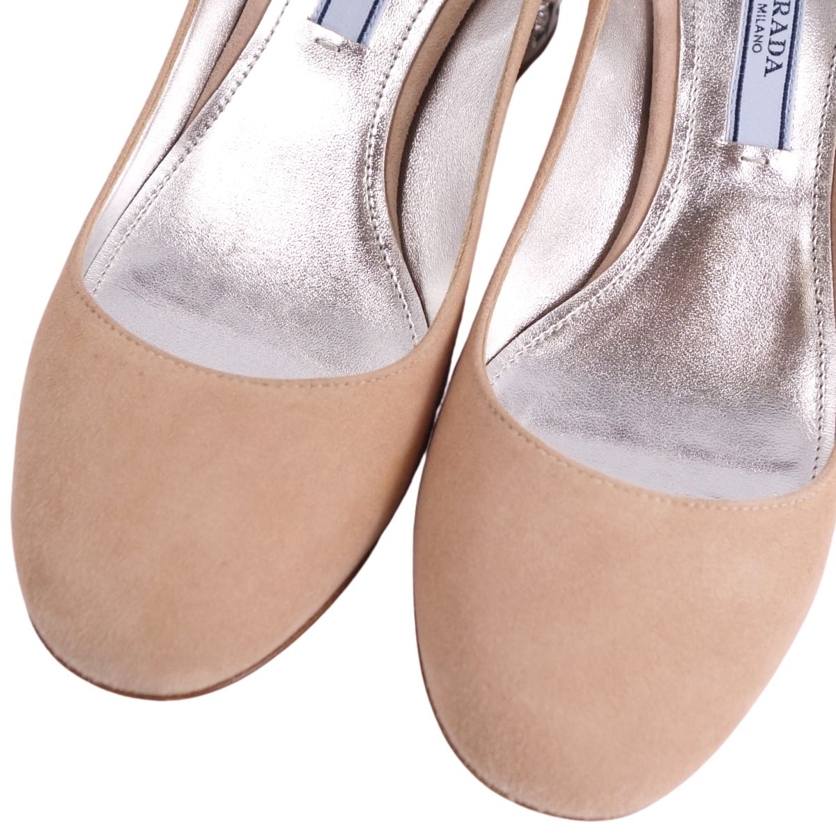 プラダ PRADA パンプス ビジュー装飾 スウェードレザー ヒール シューズ 靴 レディース イタリア製 ベージュ サイズ34.5(21.5cm相当)