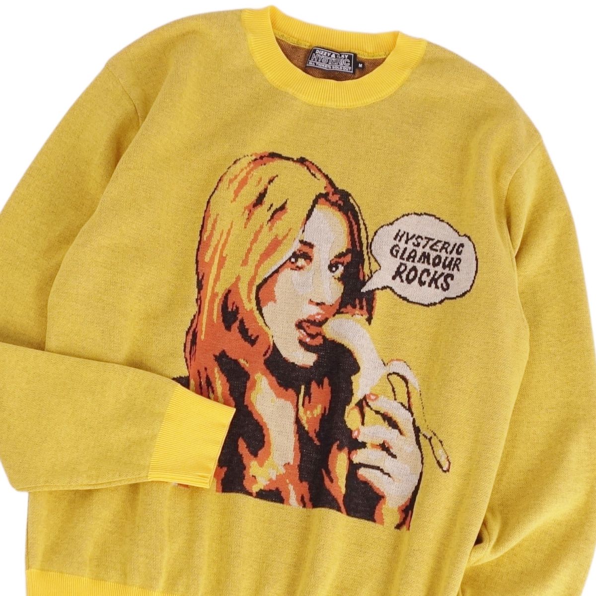 商品名 【美品】ヒステリックグラマー HYSTERIC GLAMOUR ニット セーター プルオーバー コットン トップス メンズ M イエロー【中古】