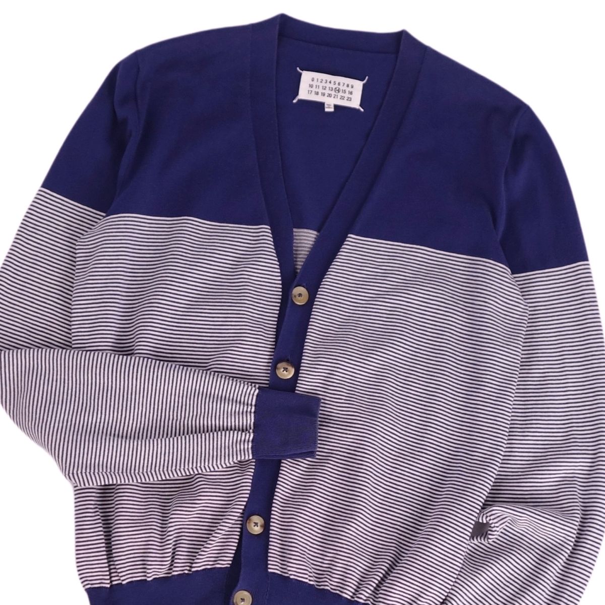 メゾンマルジェラ Maison Margiela カーディガン 14 ロングスリーブ 長袖 ボーダー コットン トップス メンズ ネイビー サイズL