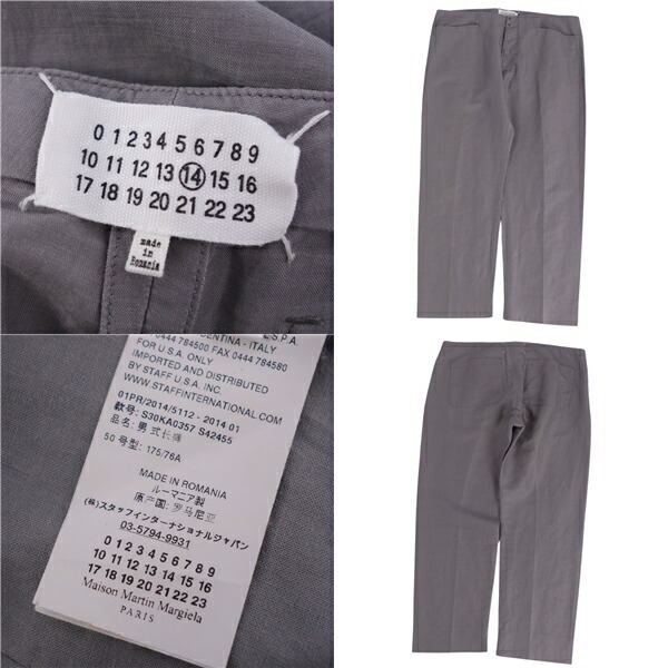 メゾンマルタンマルジェラ Maison Martin Margiela パンツ マックイーン ロングパンツ スラックス コットン リネン ボトムス メンズ グレー サイズ50(M相当)