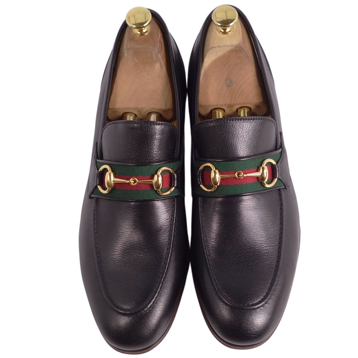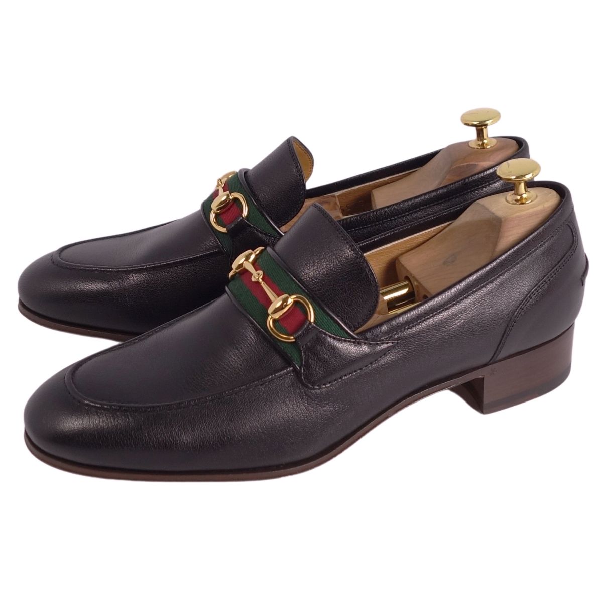 グッチ GUCCI ローファー モカシン ホースビット ウェブストライプ 革靴 メンズ イタリア製 ブラック サイズ9.5(28.5cm相当)