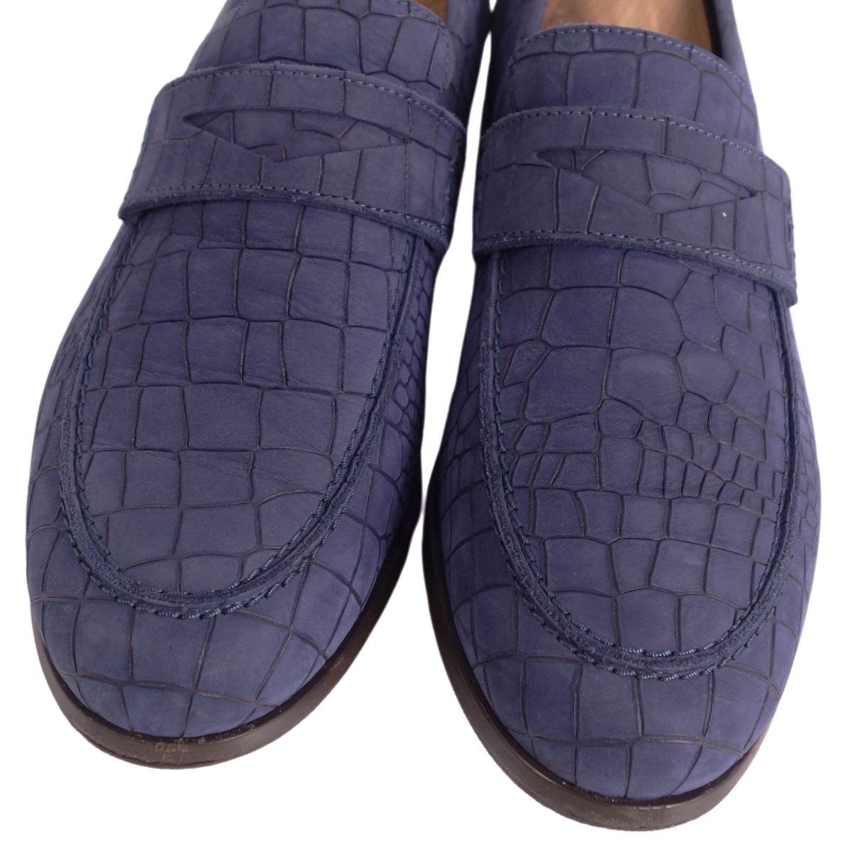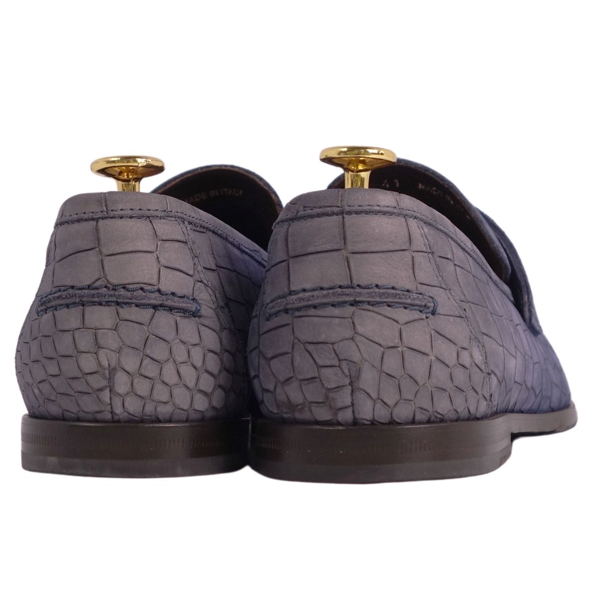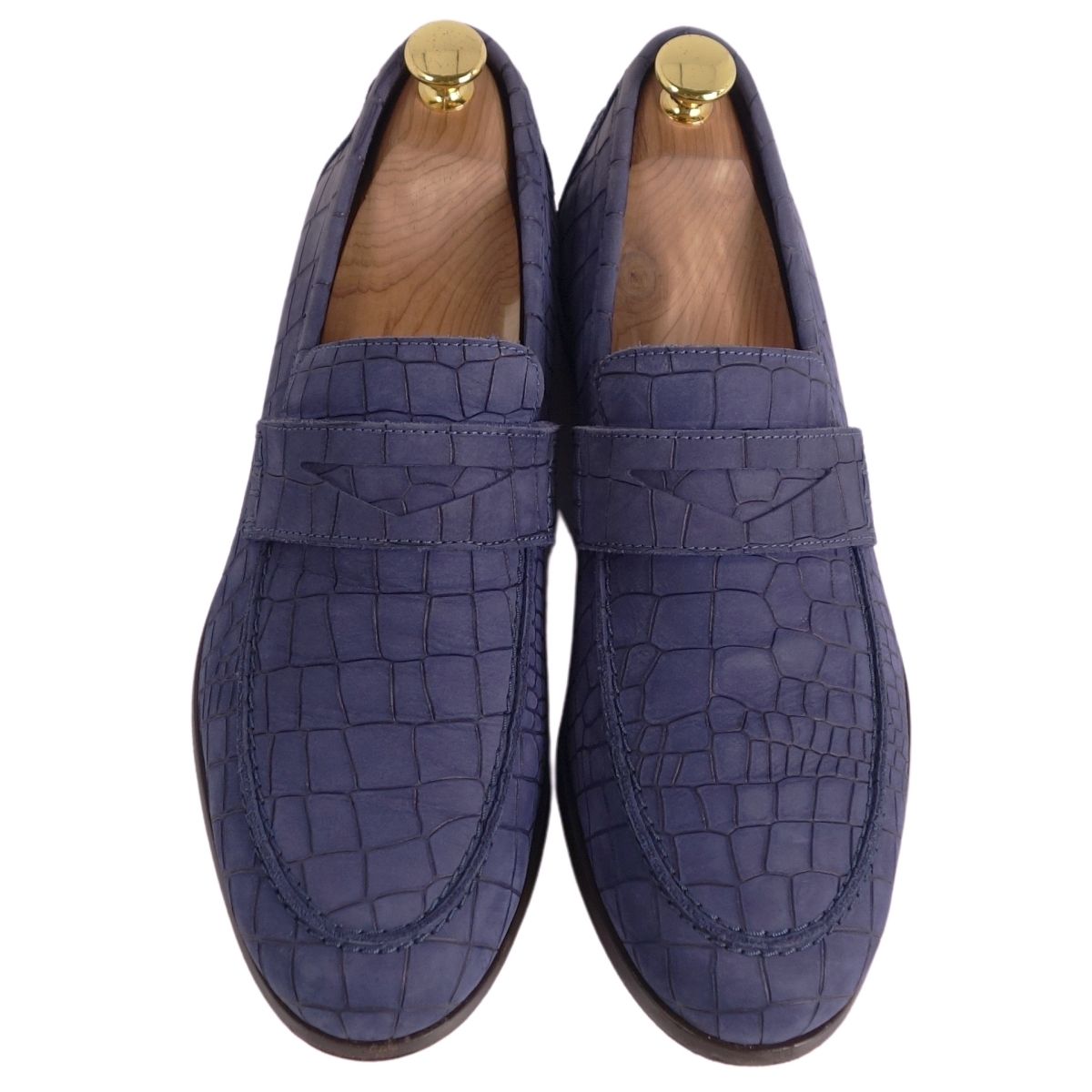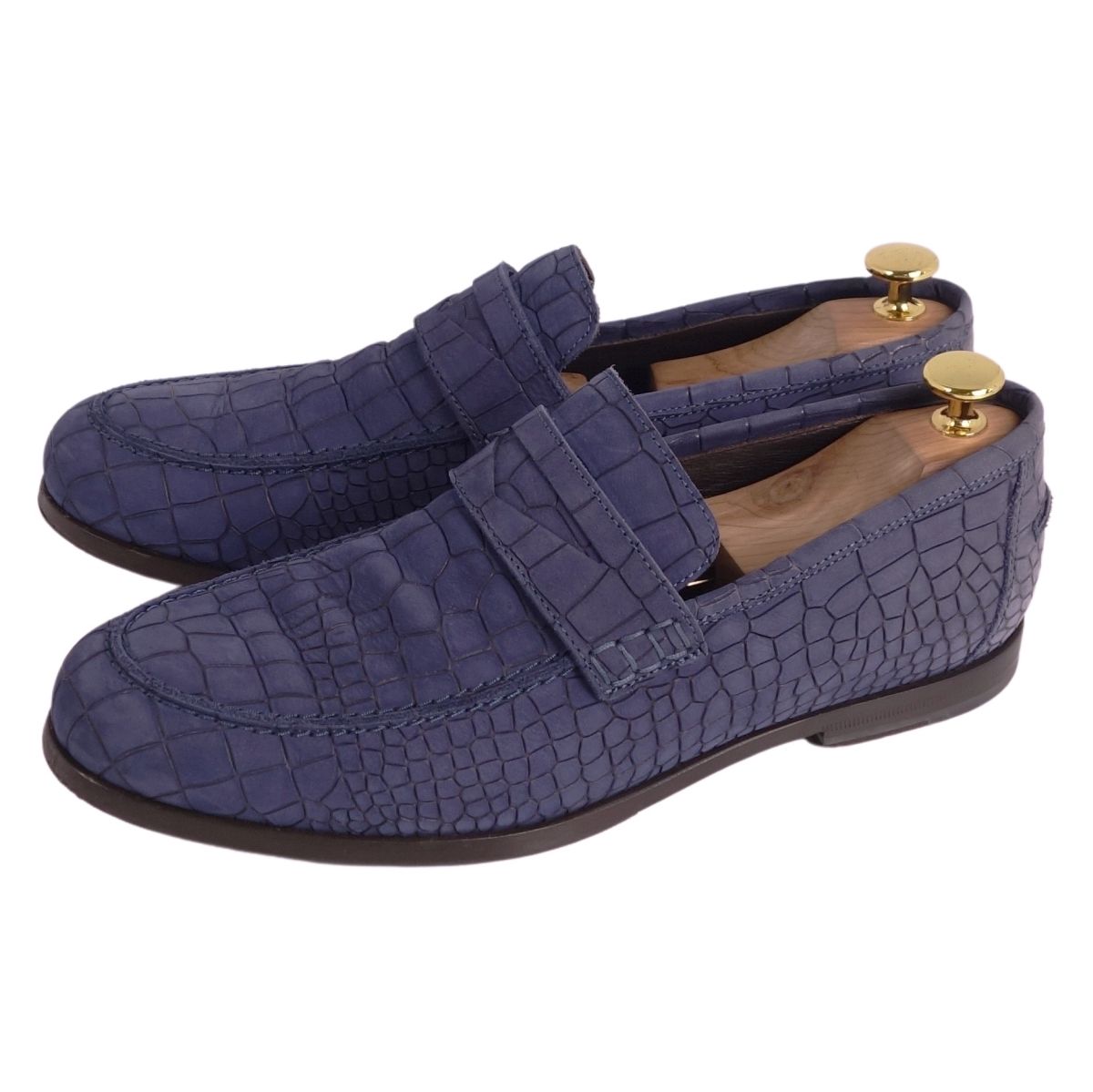 ジミーチュウ JIMMY CHOO ローファー モカシン クロコ型押し ヌバックレザー 革靴 メンズ イタリア製 ネイビー サイズ41(26cm相当)