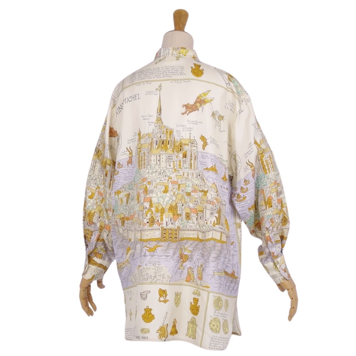 Vintage エルメス HERMES シャツ ブラウス Mont Sainct Michel モンサンミッシェル スタンドカラー ロングスリーブ 長袖 総柄 シルク トップス レディース フランス製 マルチカラー サイズ40(M相当)