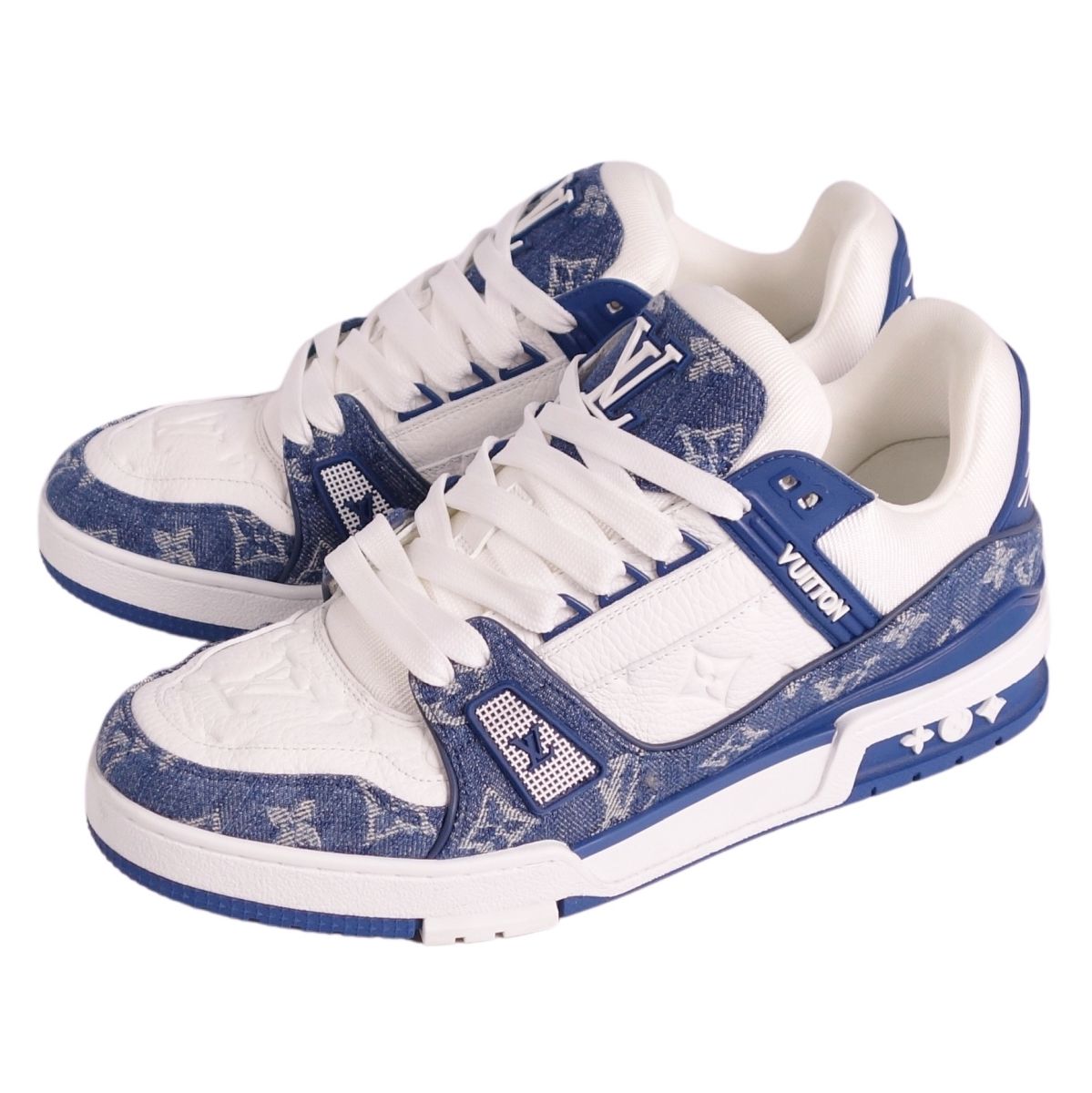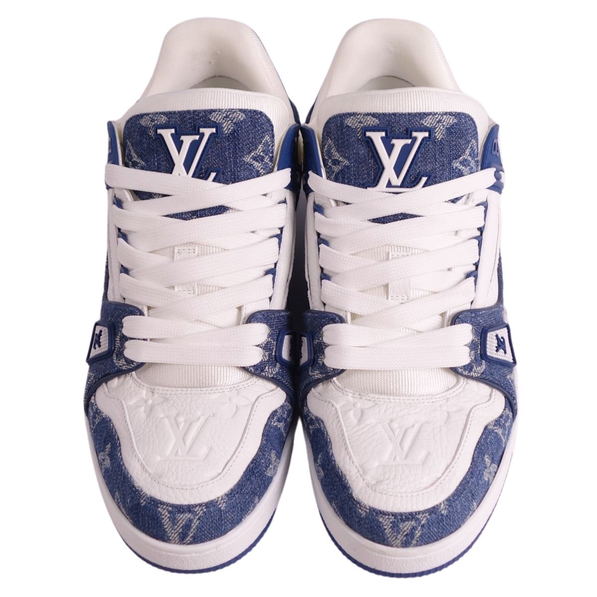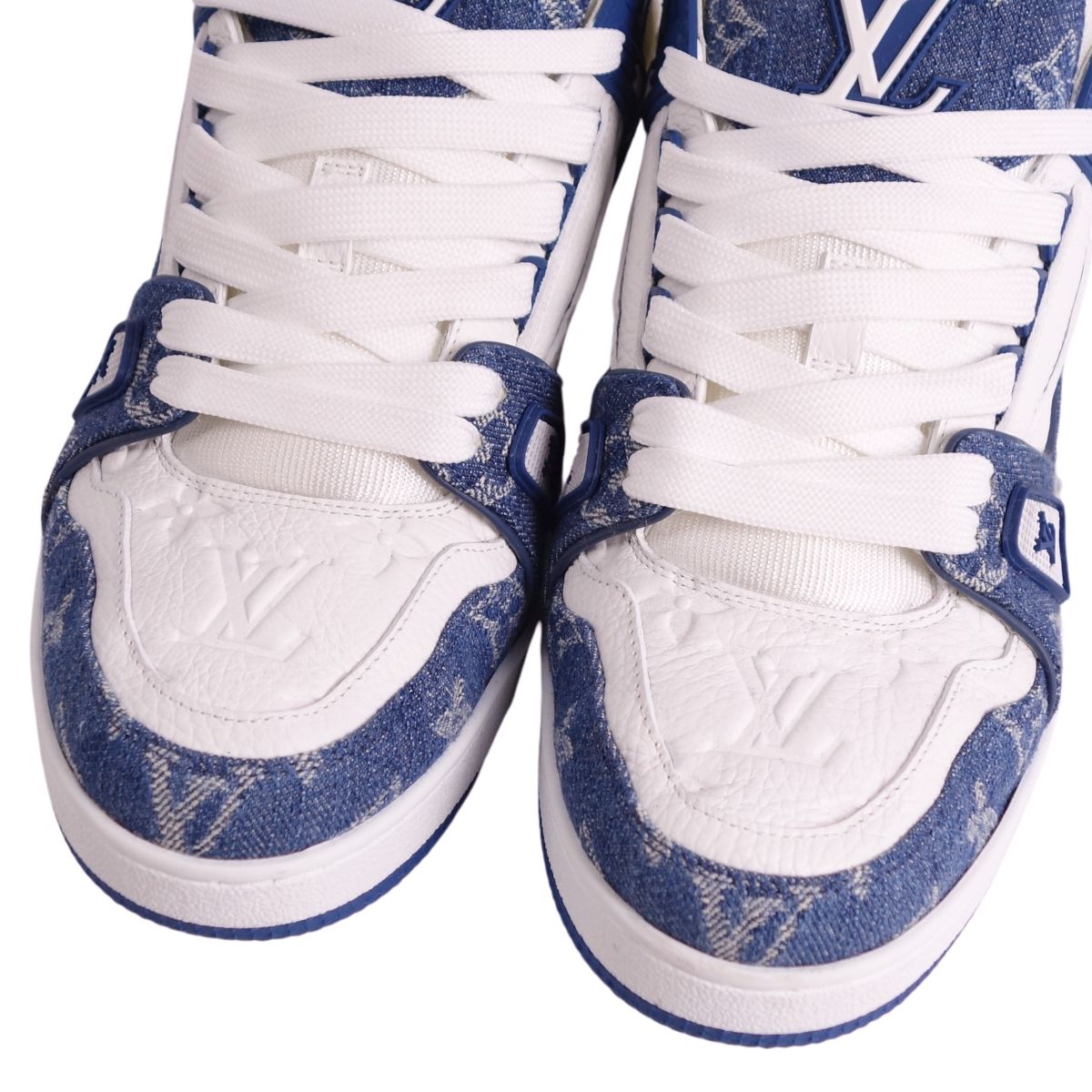 ルイヴィトン LOUIS VUITTON スニーカー LVトレイナー ライン デニム モノグラム レザー シューズ 靴 メンズ イタリア製 ホワイト/ブルー サイズ7.5(26cm相当)