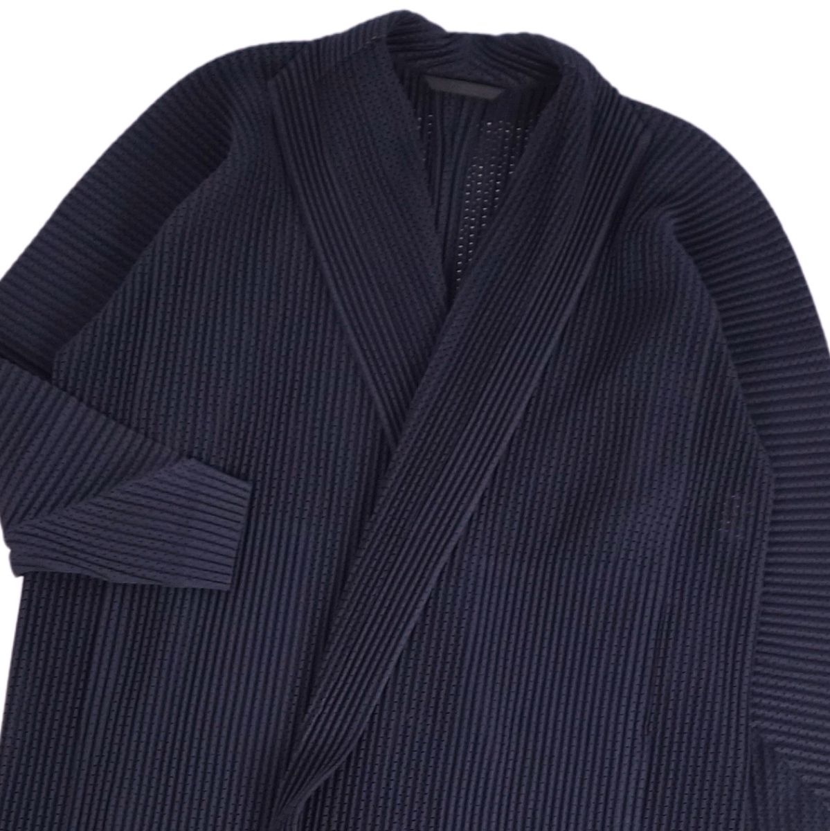 オムプリッセ HOMME PLISSE ロングコート ボタンレス プリーツ アウター メンズ ネイビー サイズ1(S相当)