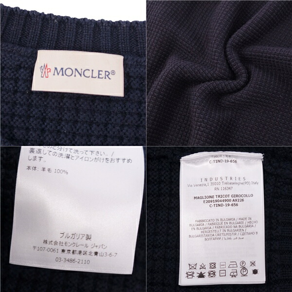 モンクレール MONCLER ニット 2019 セーター ロングスリーブ 長袖 ウール トップス メンズ ネイビー サイズL