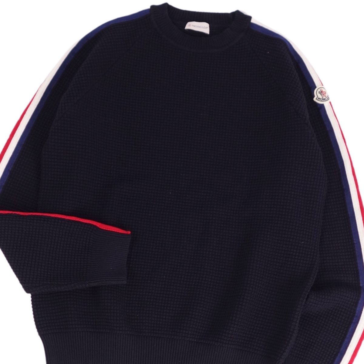 【美品】モンクレール MONCLER ニット 2019 セーター ロングスリーブ 長袖 ウール トップス メンズ L ネイビー【中古】