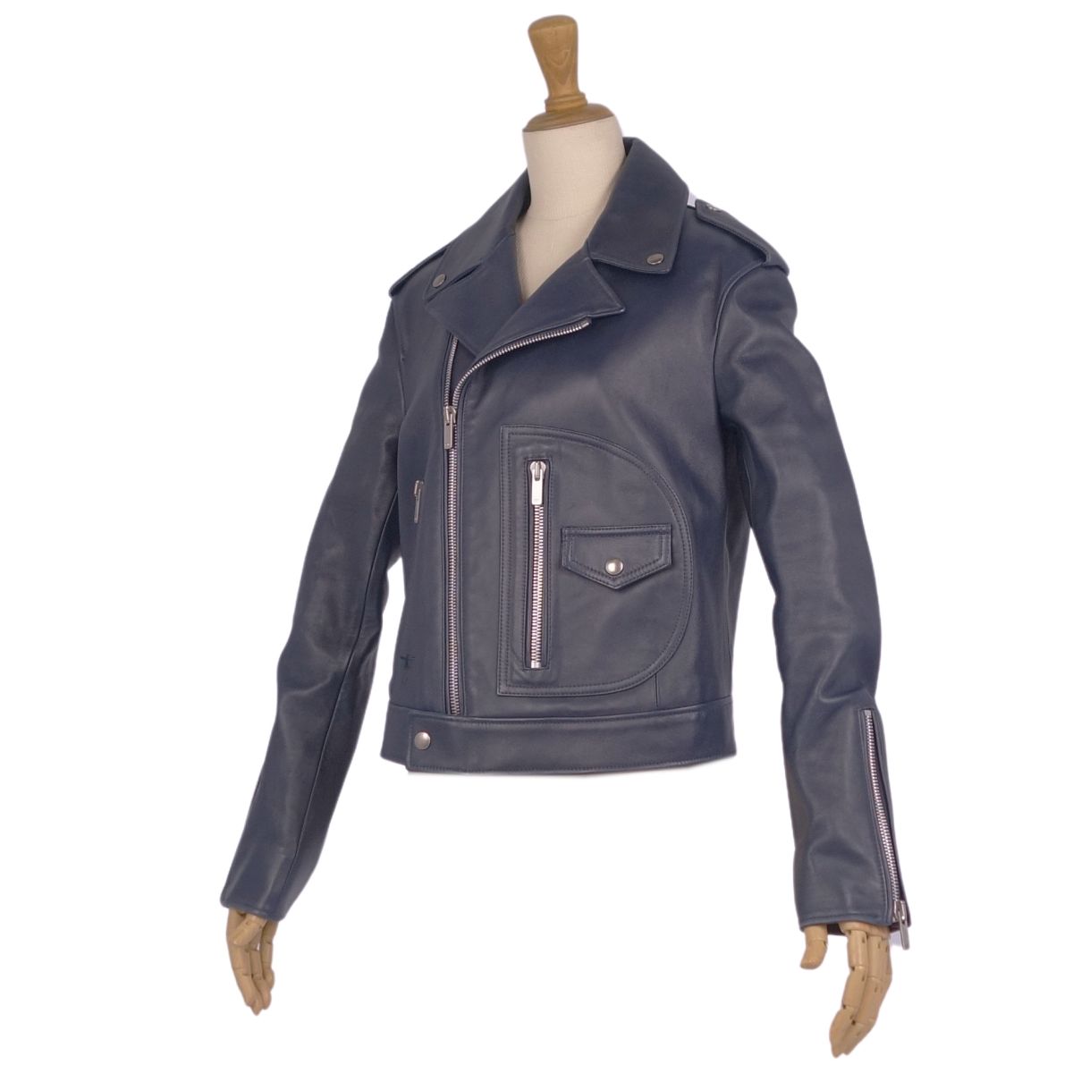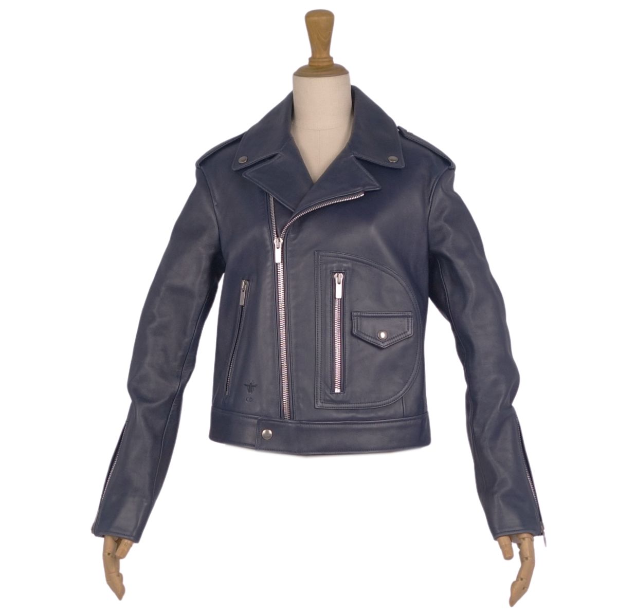 クリスチャンディオール Christian Dior ジャケット レザージャケット ダブル ライダースジャケット バイカージャケット ラムレザー Bee刺繍 アウター レディース ネイビー サイズI40(M相当)