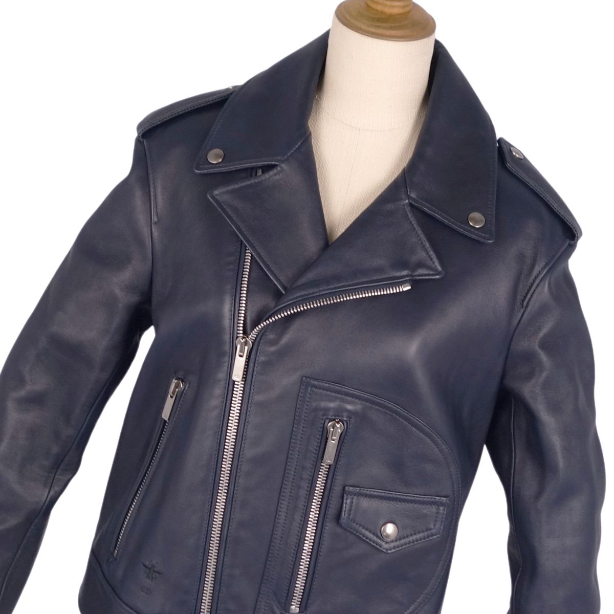 | 商品名 | 【美品】クリスチャンディオール Christian Dior ジャケット レザージャケット ダブル ライダースジャケット バイカージャケット ラムレザー Bee刺繍 アウター レディース I40(M相当) ネイビー【中古】 |