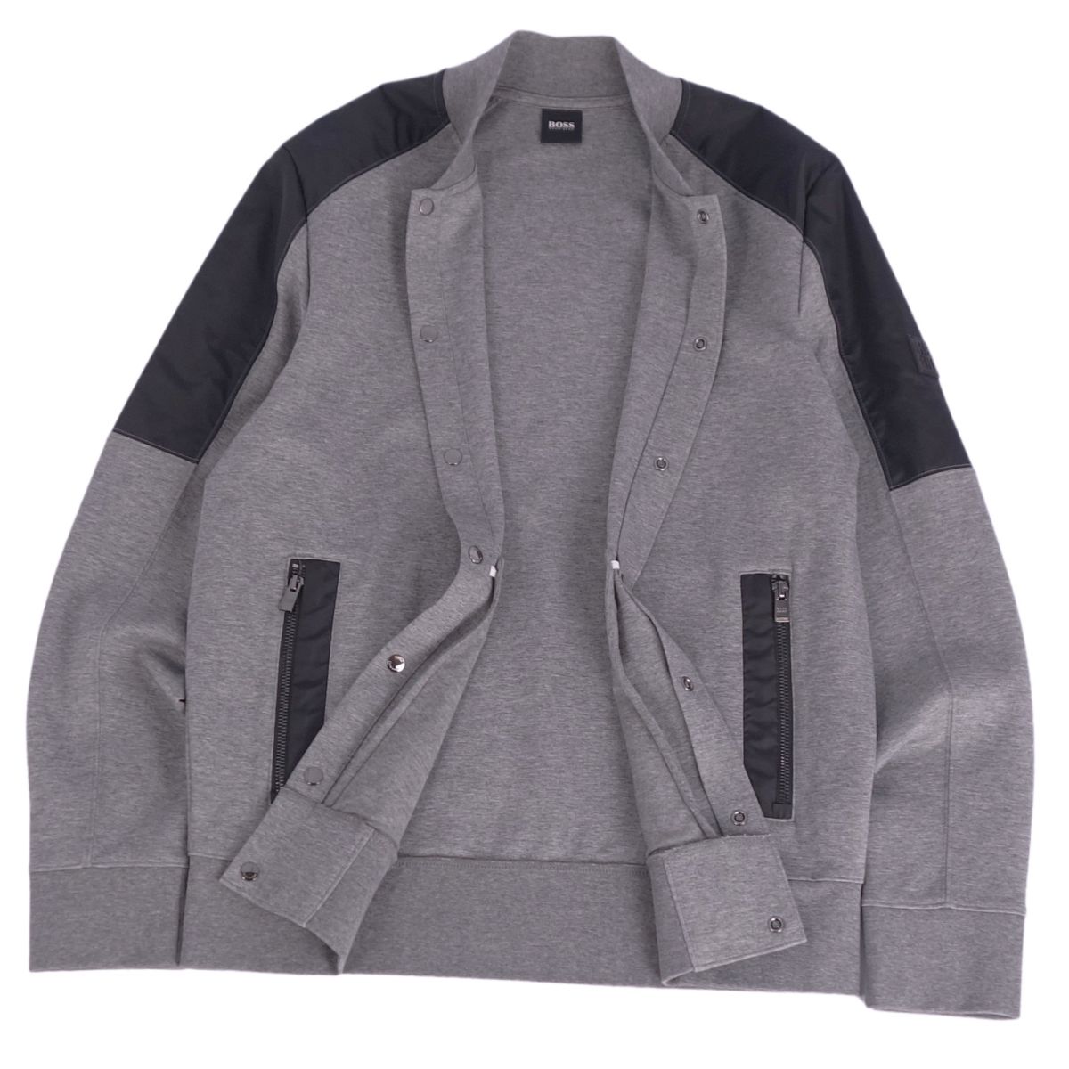 ヒューゴボス HUGO BOSS ジャケット テディジャケット ブルゾン スタジアムジャンパー コットン 切り替え アウター メンズ グレー サイズM