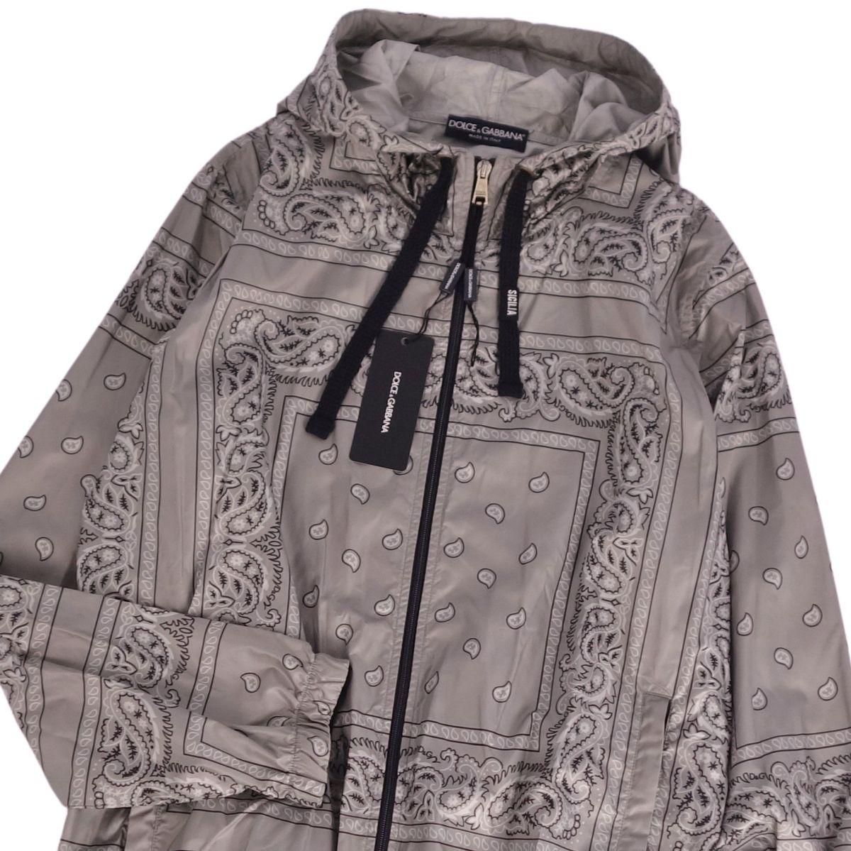 商品名 【新古品】ドルチェ&ガッバーナ DOLCE&GABBANA ジャケット ジップアップ ペイズリー ポリエステル アウター メンズ イタリア製 52(L相当) グレー【中古】
