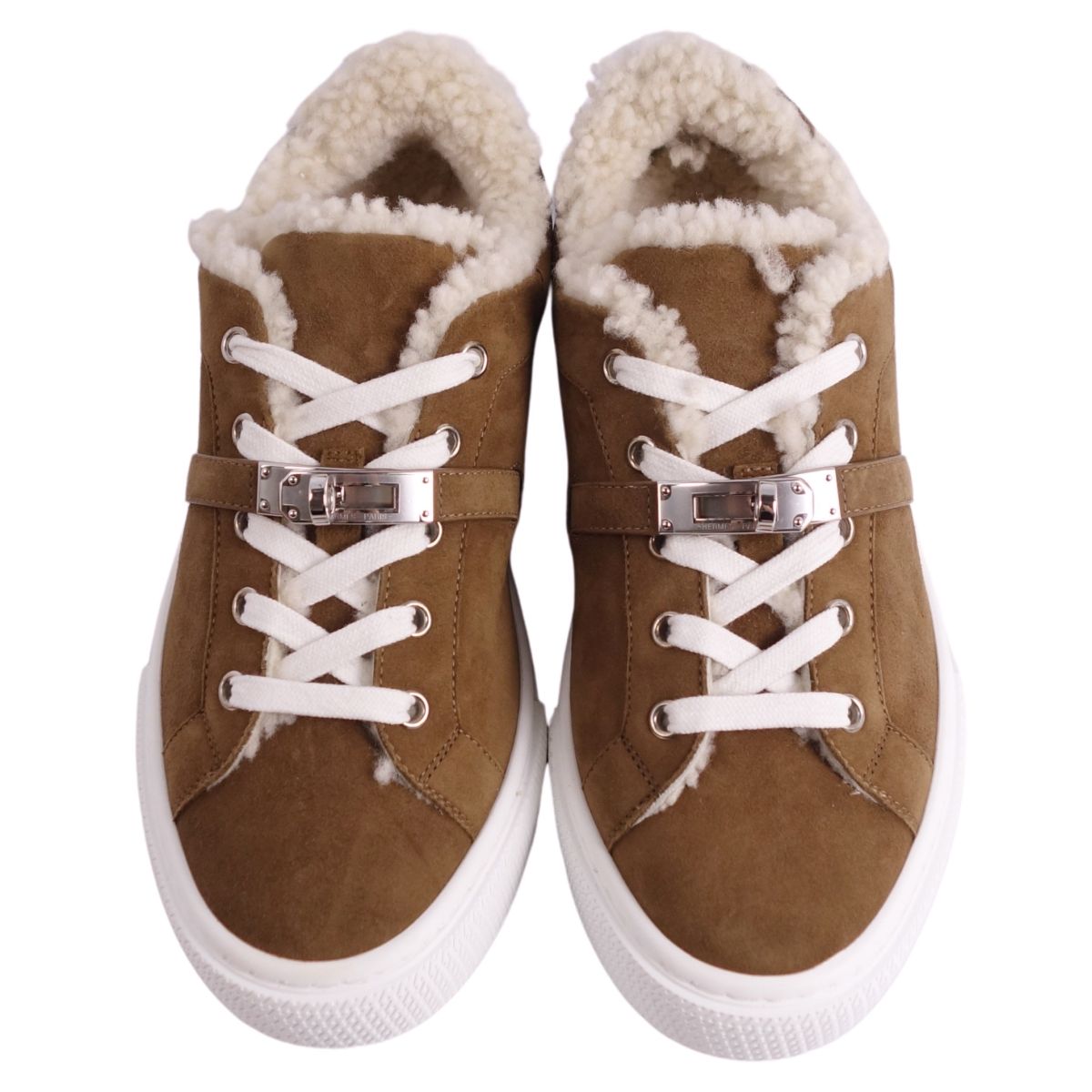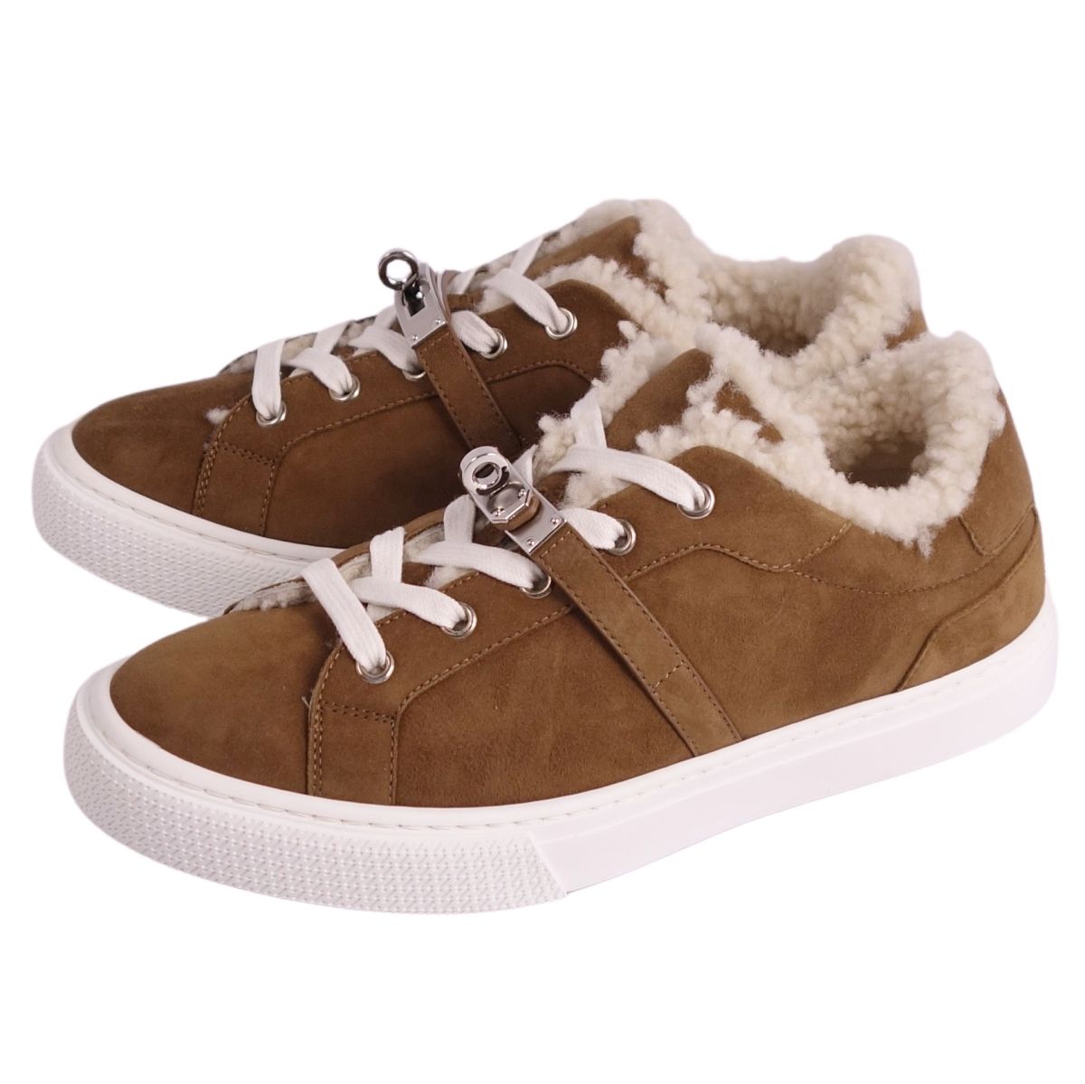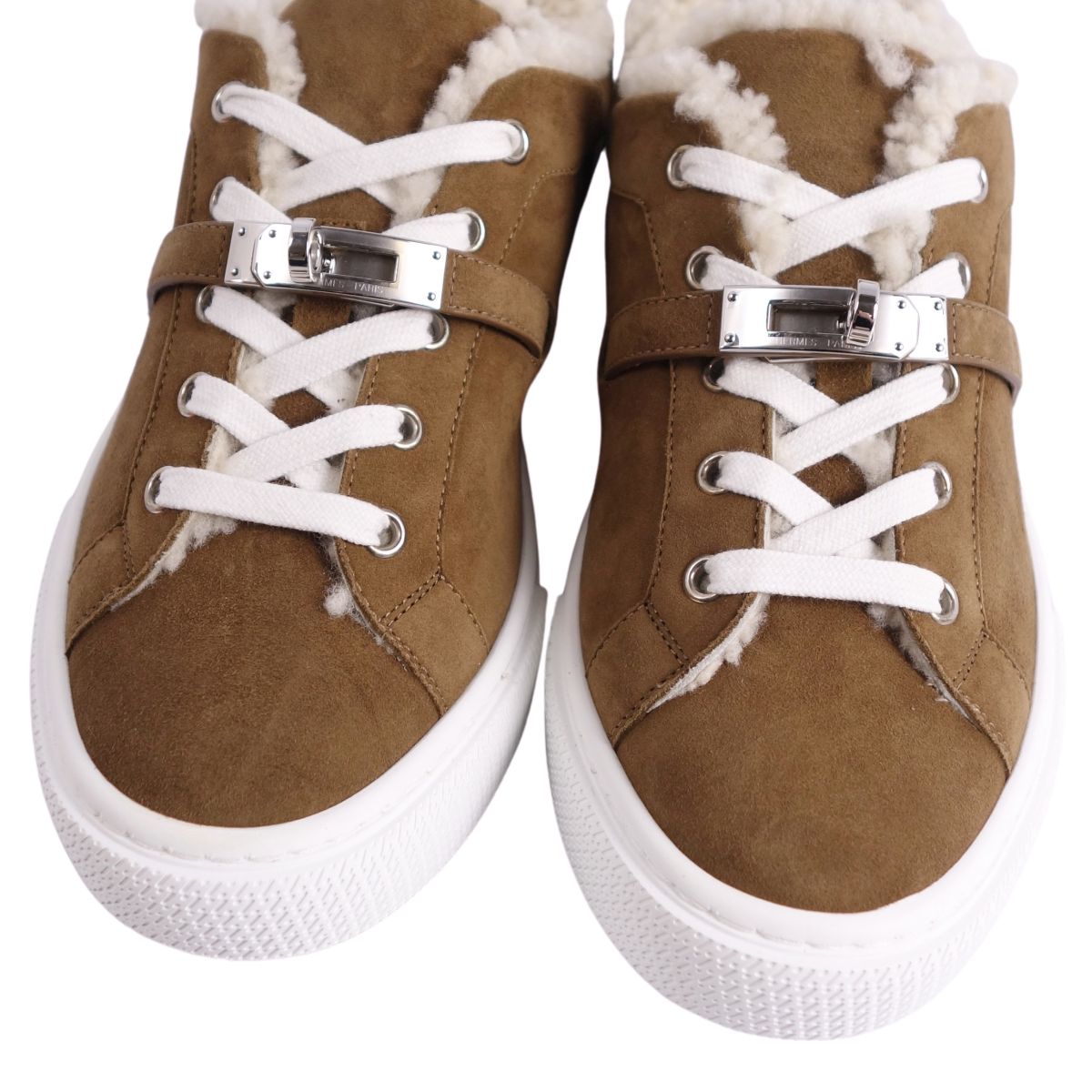 エルメス HERMES スニーカー 2022 Day デイ ケリー金具 レースアップ ムートン シューズ レディース イタリア製 ブラウン サイズ37(24cm相当)