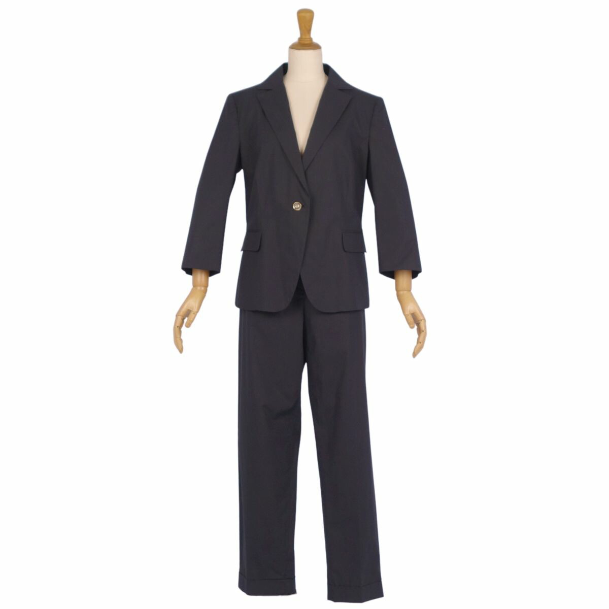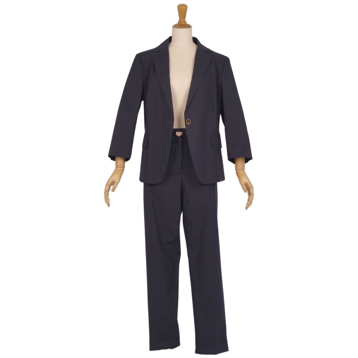 サルヴァトーレ フェラガモ Salvatore Ferragamo セットアップ パンツスーツ コットン ジャケット パンツ レディース イタリア製 ブラック サイズジャケット:46 パンツ:44