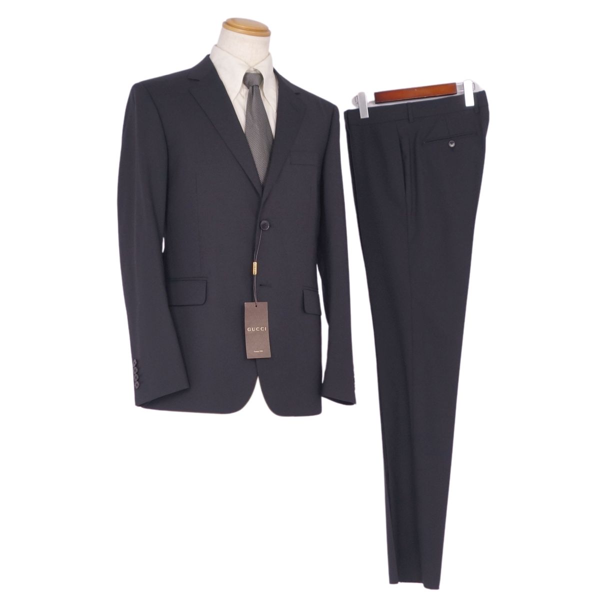 グッチ GUCCI セットアップ スーツ シングル ウール ジャケット パンツ メンズ イタリア製 ブラック サイズ7-50R