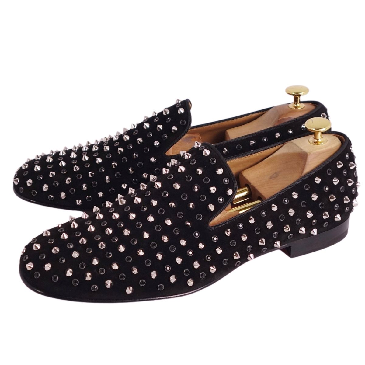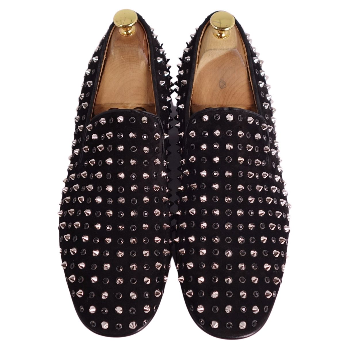 クリスチャンルブタン Christian Louboutin ローファー スリッポン スタッズ スウェードレザー シューズ 靴 メンズ イタリア製 ブラック サイズ44(29cm相当)