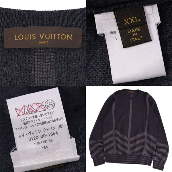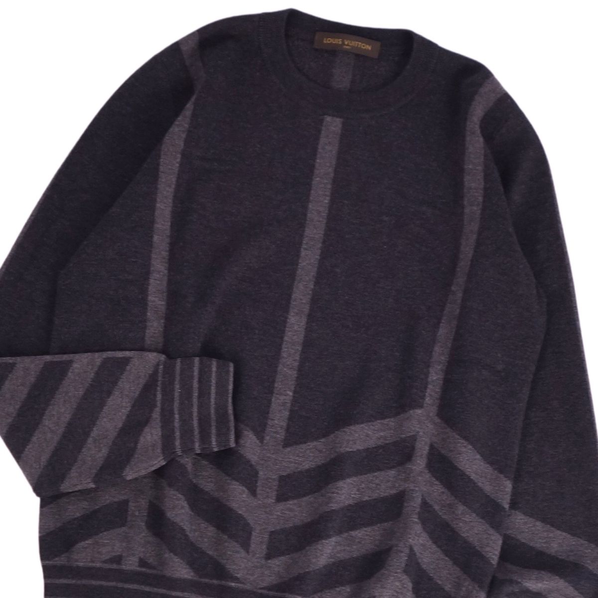 商品名 【極美品】ルイヴィトン LOUIS VUITTON ニット セーター クルーネック ロングスリーブ 長袖 総柄 ウール トップス メンズ XXL グレー【中古】