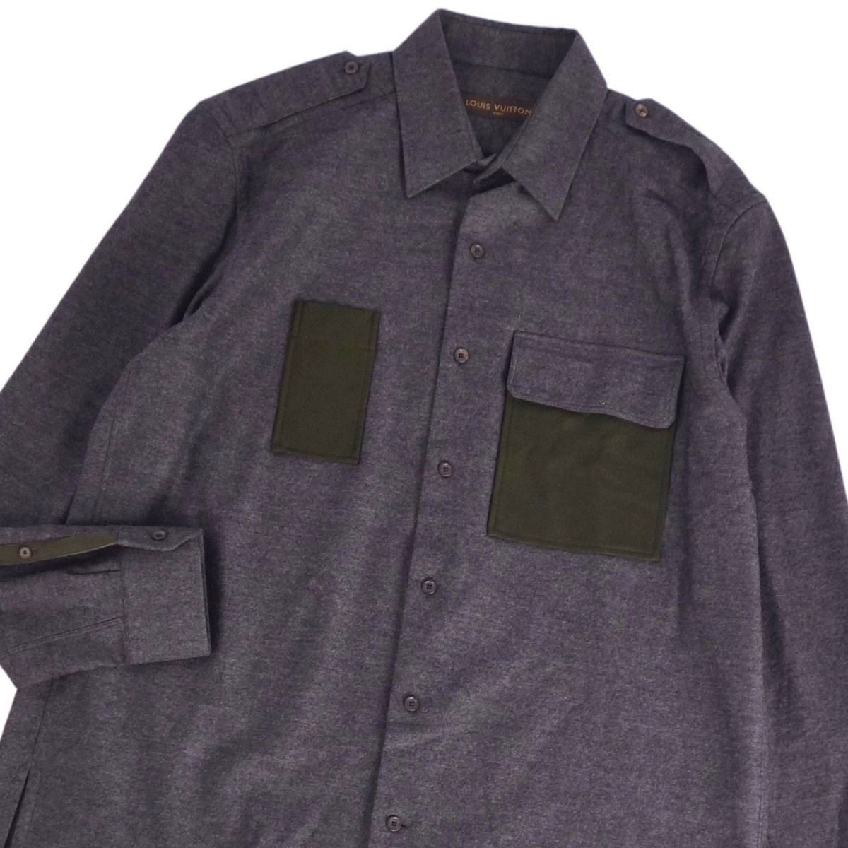 ルイヴィトン LOUIS VUITTON シャツ フランネルシャツ ネルシャツ ロングスリーブ 長袖 無地 ウール トップス メンズ グレー サイズXL