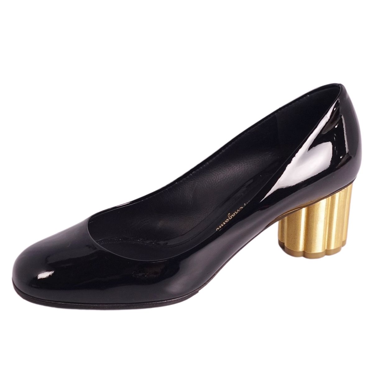 サルヴァトーレ フェラガモ Salvatore Ferragamo パンプス エナメルレザー ヒール シューズ 靴 レディース イタリア製 ブラック サイズ6.5D(24cm相当)