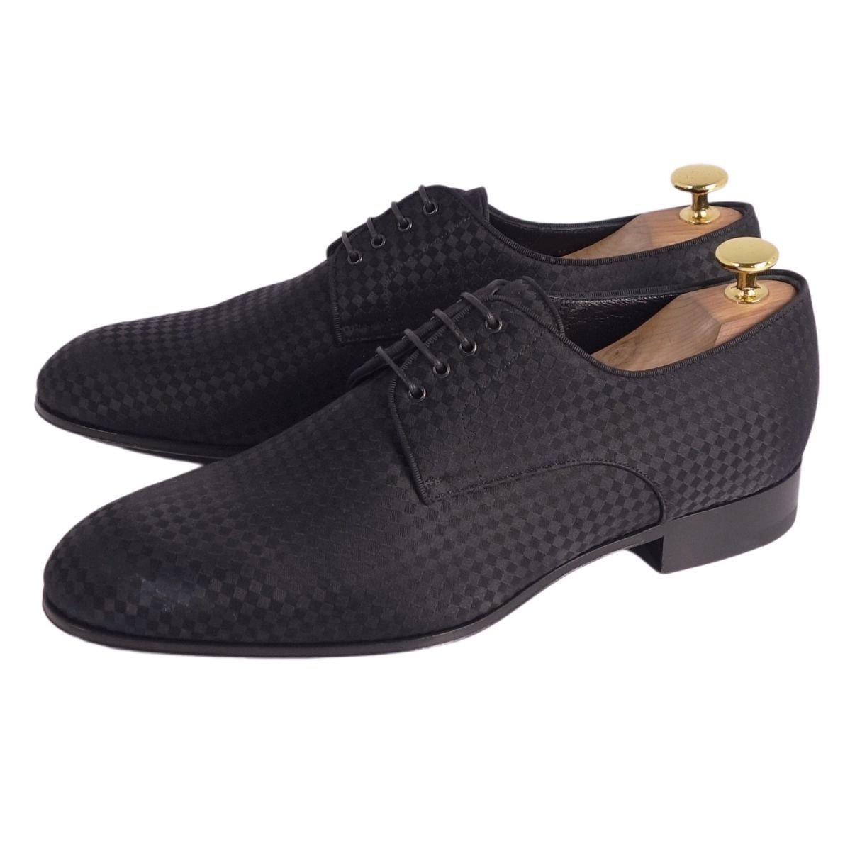 ルイヴィトン LOUIS VUITTON レザーシューズ ダービーシューズ ダミエ サテン シューズ 靴 メンズ イタリア製 ブラック サイズ6.5(25.5cm相当)